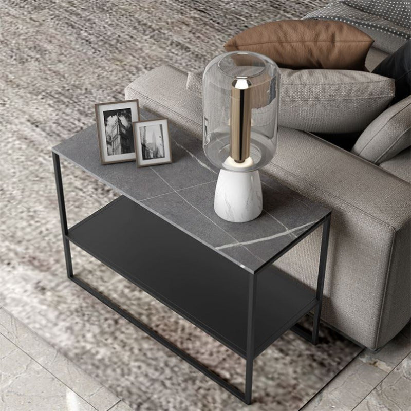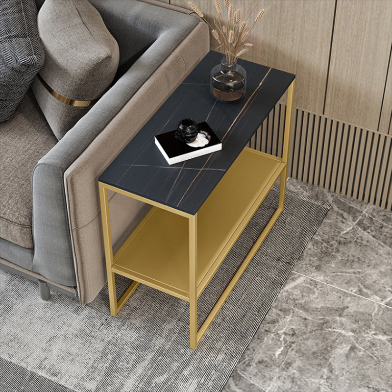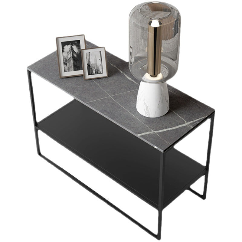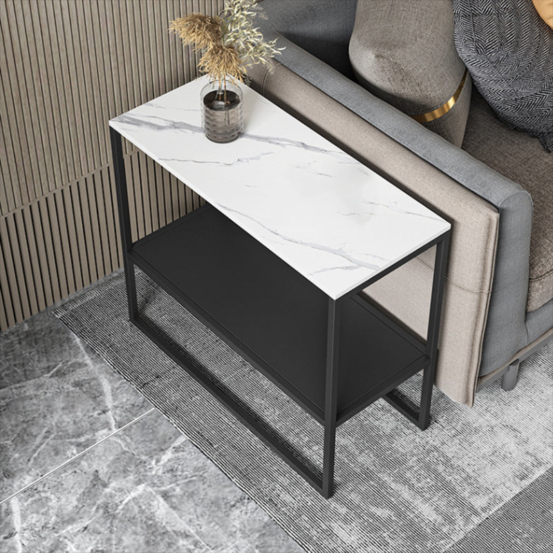 Contemporary Sled with Shelf Rectangular Double Tier Living Room Side Table