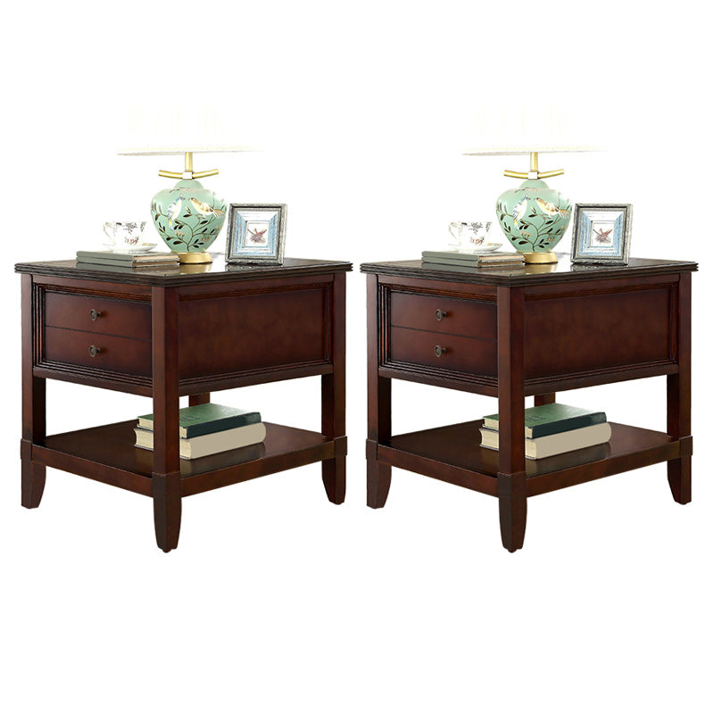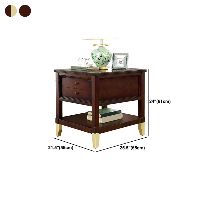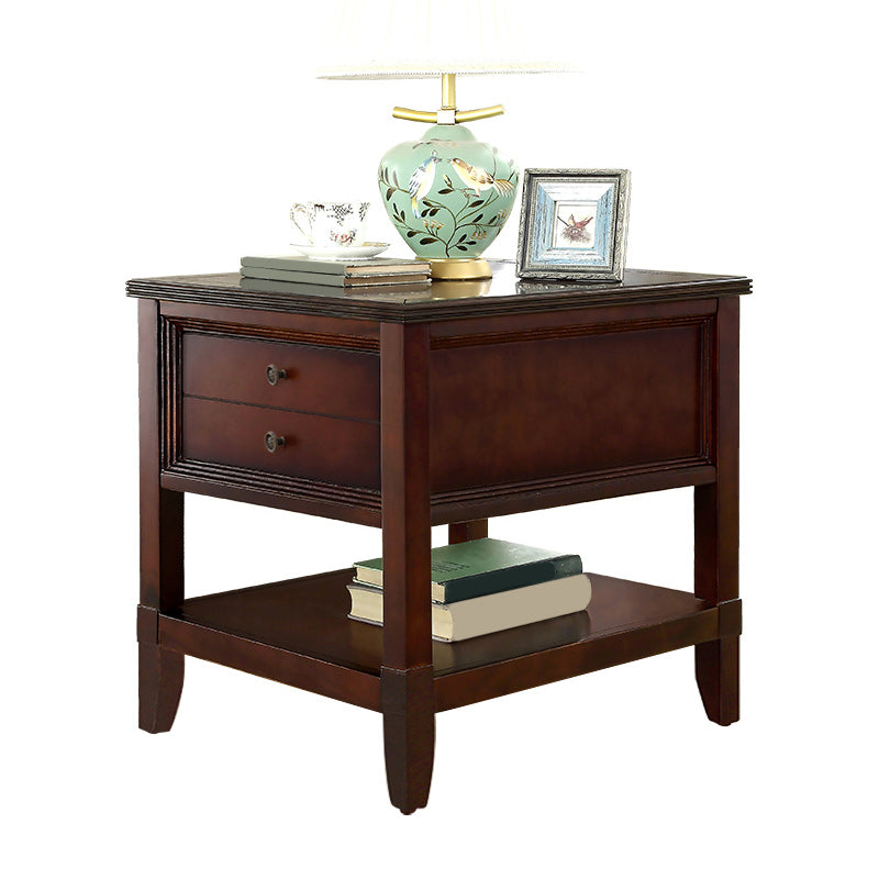 Contemporary Solid Wood End Table Rectangular Side Table with Storage and Shelf
