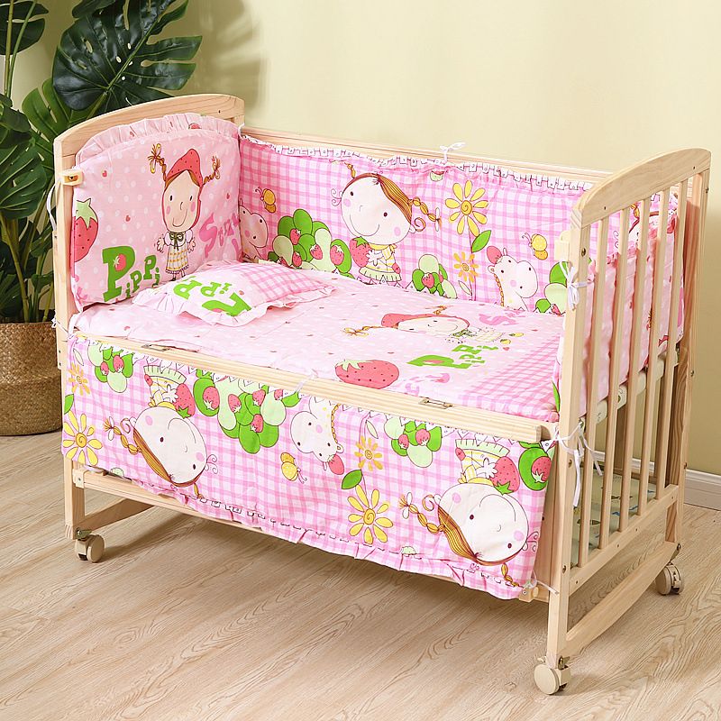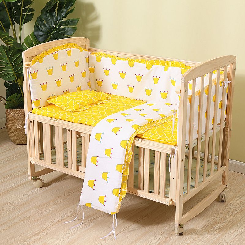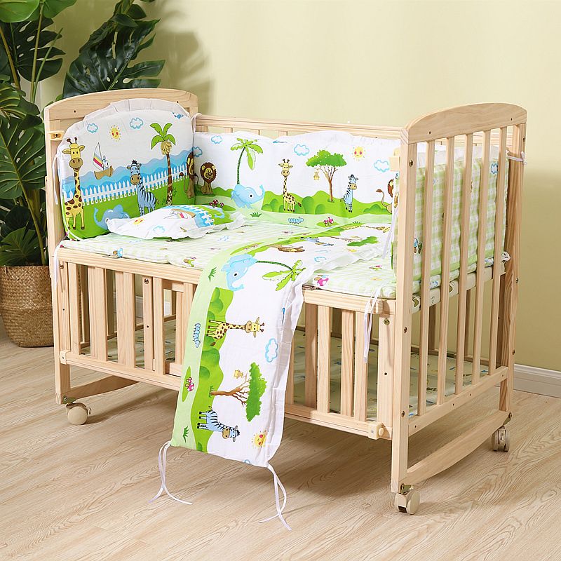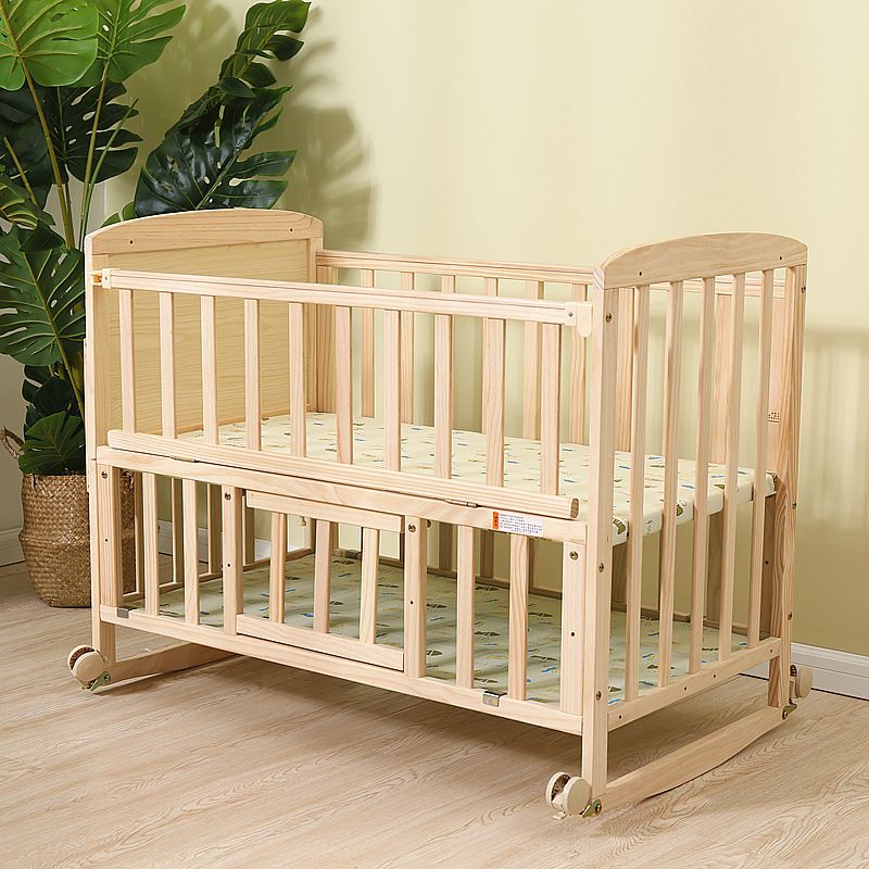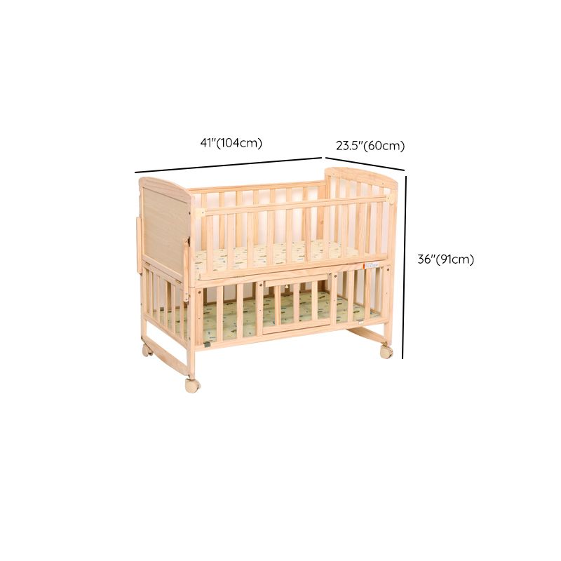 Convertible Nursery Crib with Casters and Changing Table in Light Wood