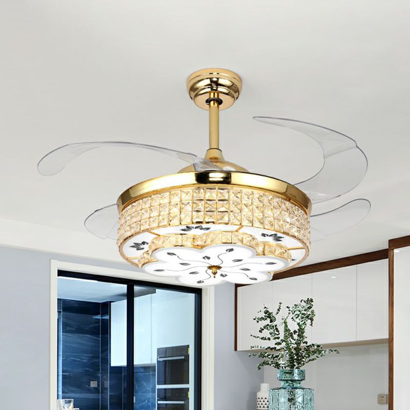 Crystal Floral Crystal Plafond Lampe à la lampe en or moderne Finition en or LED Semi Flush Light avec 4 lames transparentes