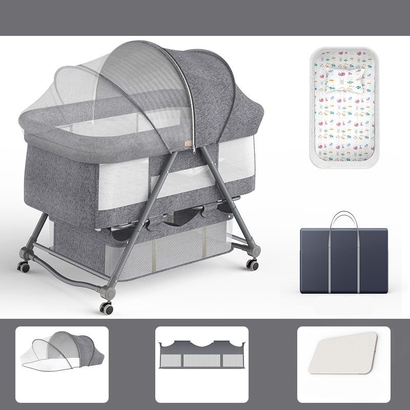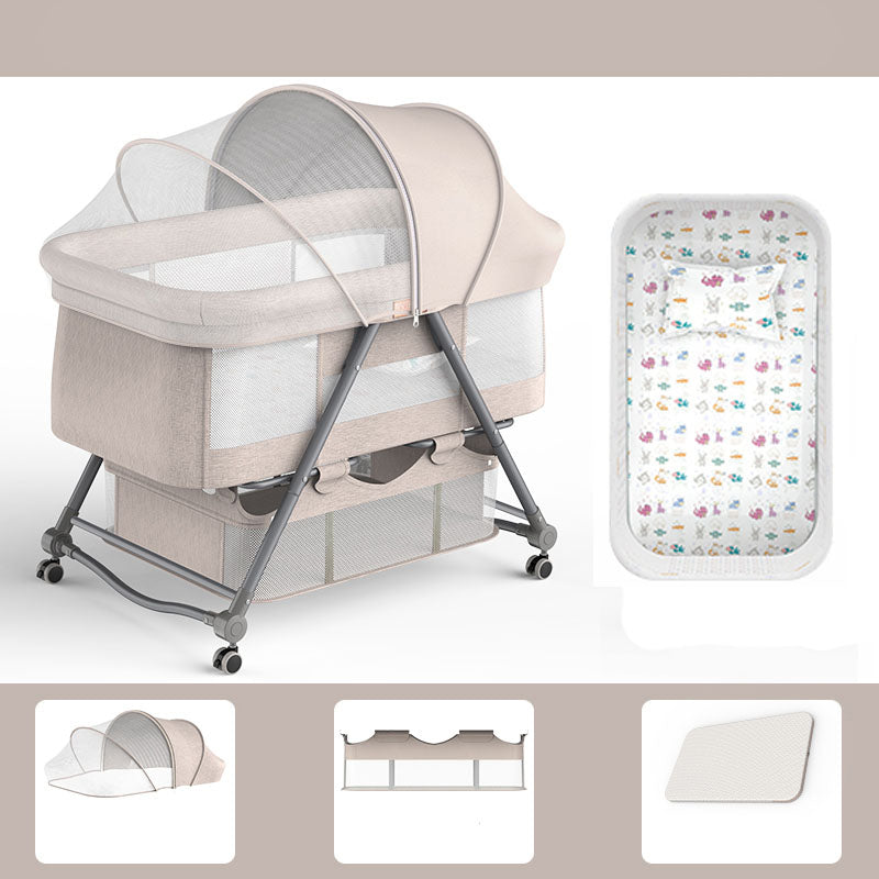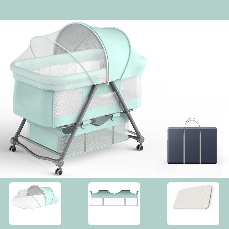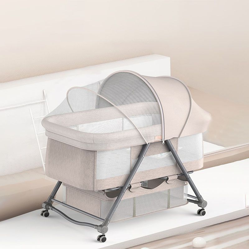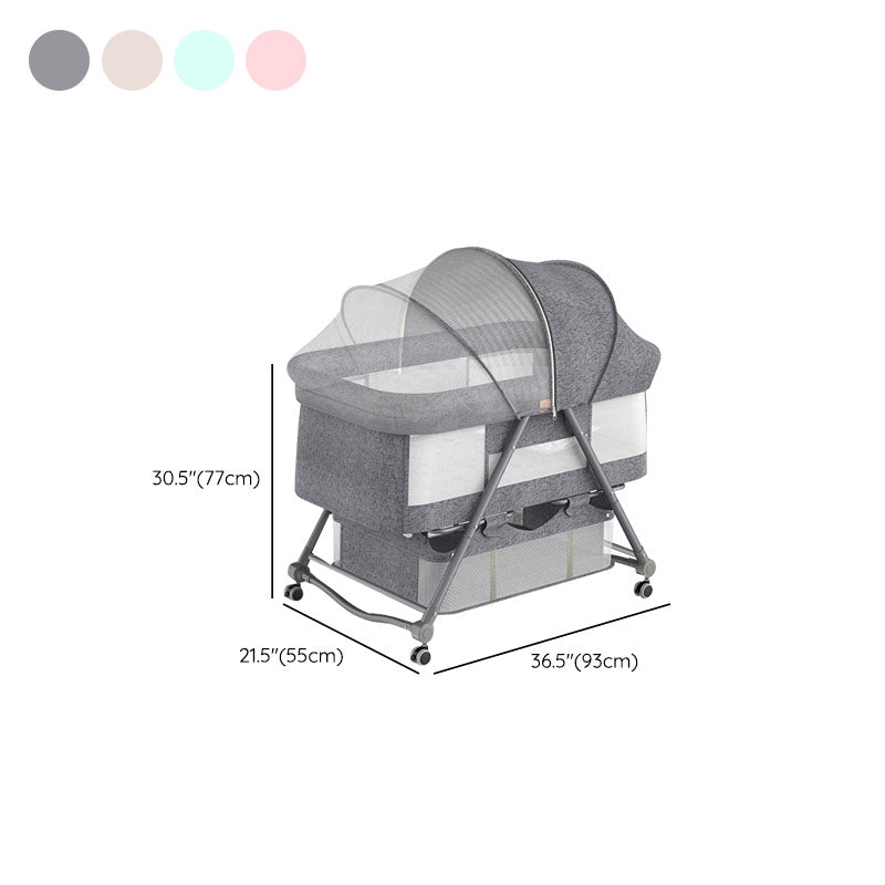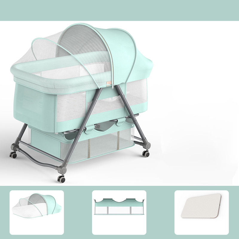 Foldable and Convertible Crib Cradle Square Metal Bassinet with Wheel