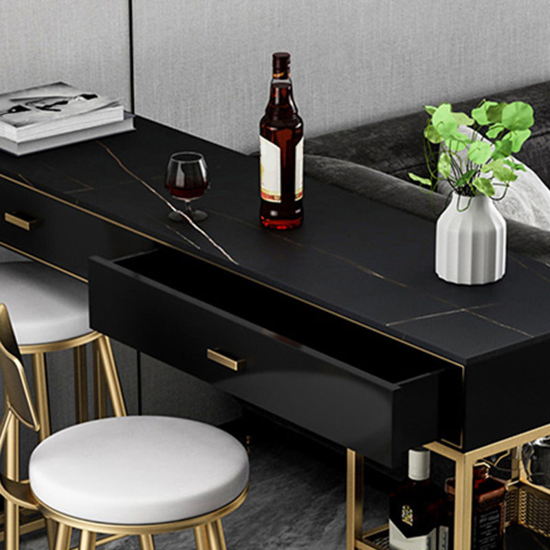 Glam Style Bar Table 42-inch Height Stone Top Pub Table with Two Drawer