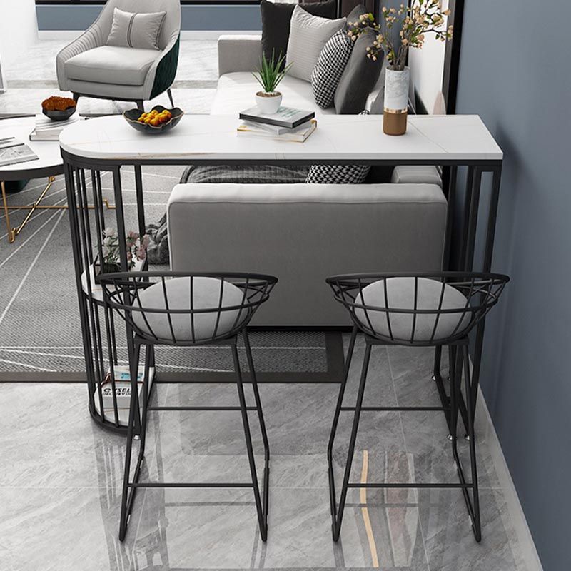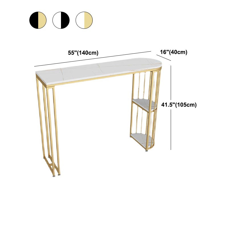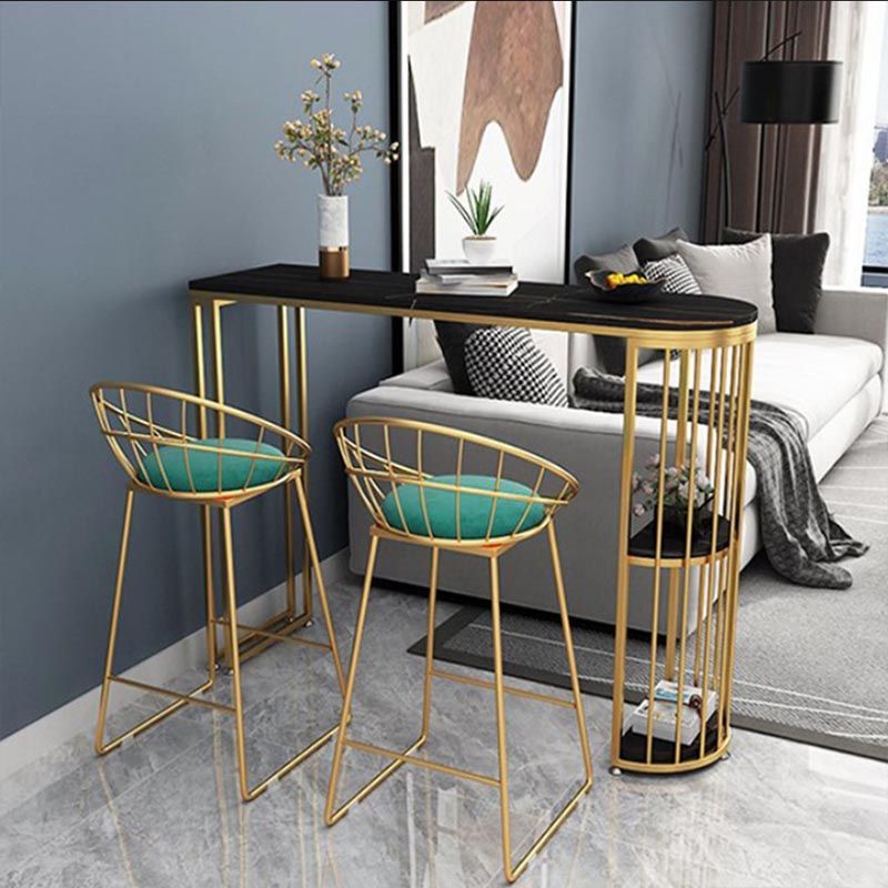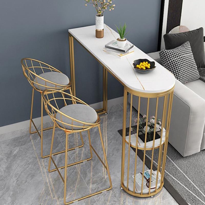 Glam Style Bar Table Stone Top Dining Room Bistro Table with Storage Rack