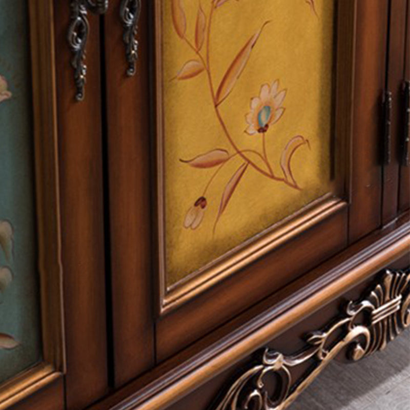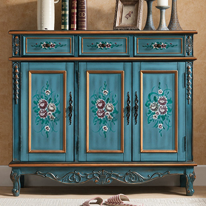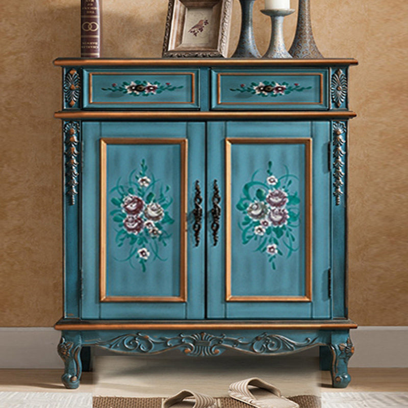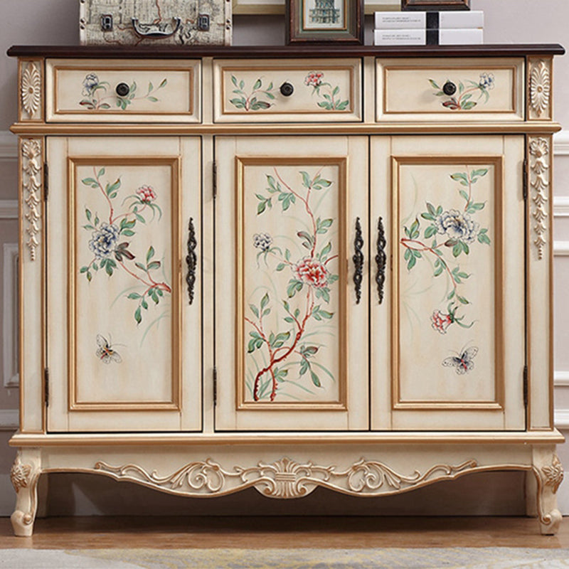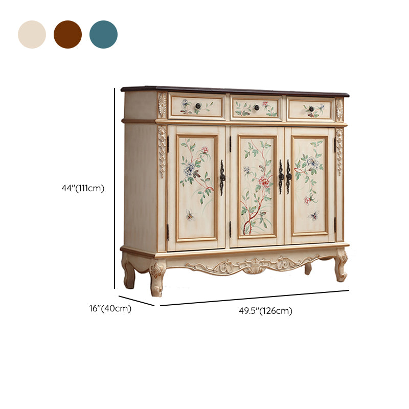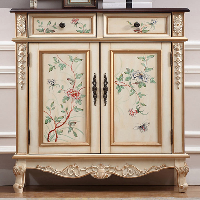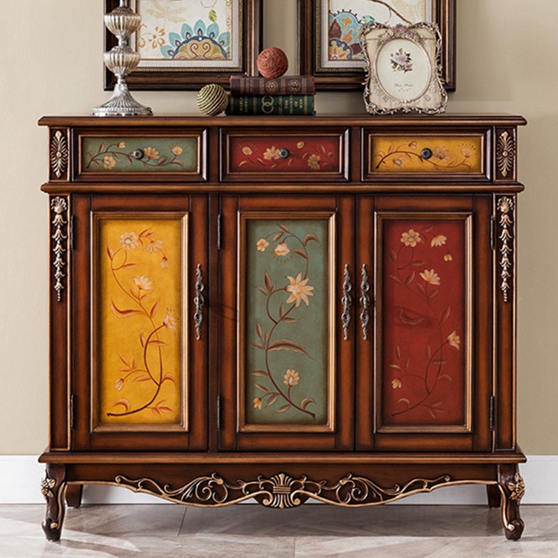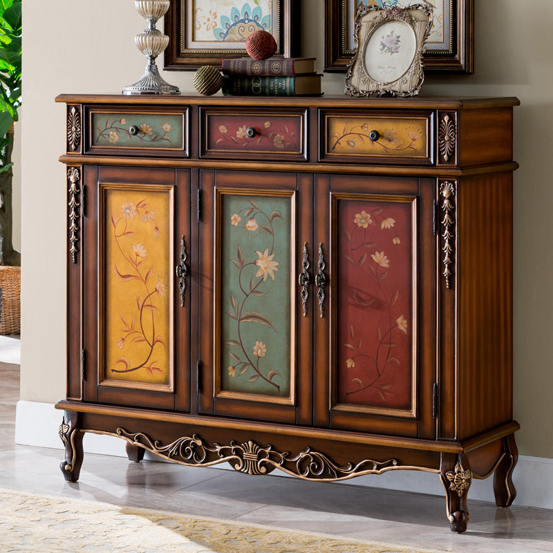 Industrial Cabriole Legs Accent Cabinet Solid Wood Oak Storage Cabinet with Drawer