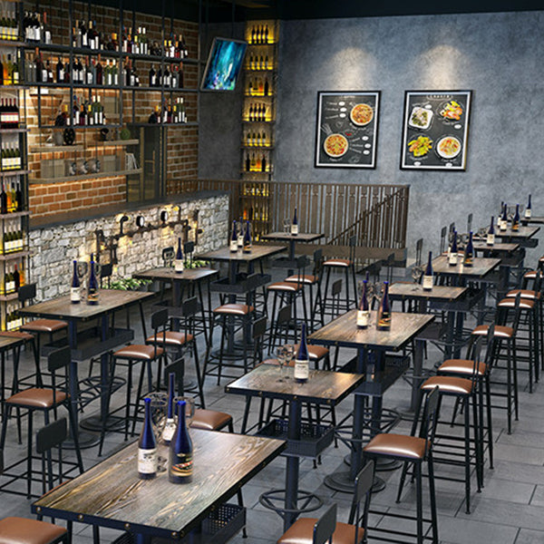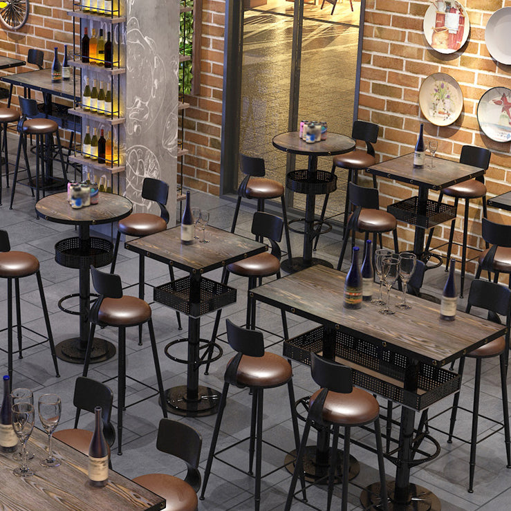 Industrial Metal Bistro Accent Dining Table Brown Bar Table with Storage