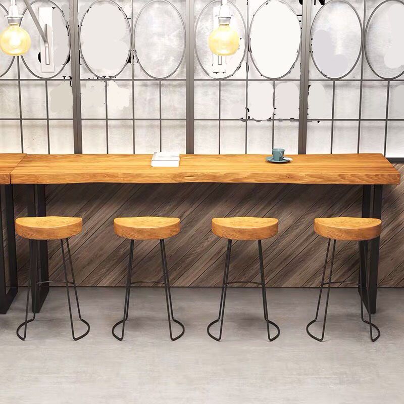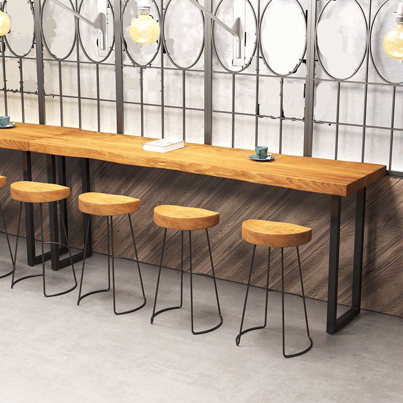 Industrial Metal Frame Pub Table Light Brown Wood Top Bar Table