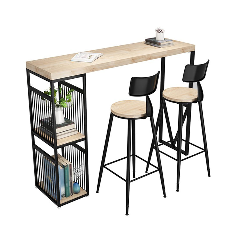 Industrial Rectangle Bistro Accent Dining Table Double pedestal Indoor Patio Bar Table