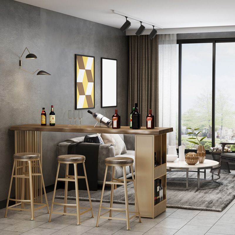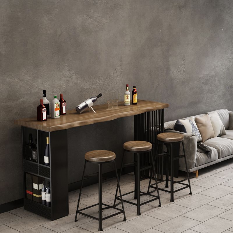 Industrial Rectangular Bar Table Solid Wood Bistro Table with Double Pedestal