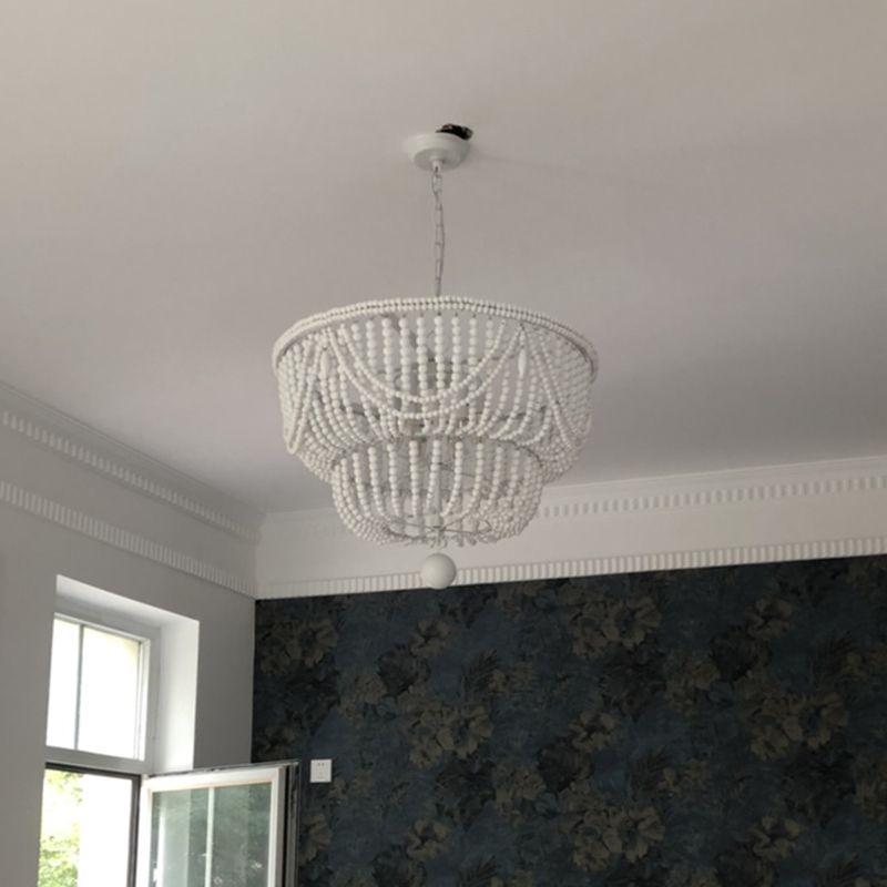Lampe suspension de suspension de plafond de style plafond de style lustre en bois en forme de panier en forme de panier