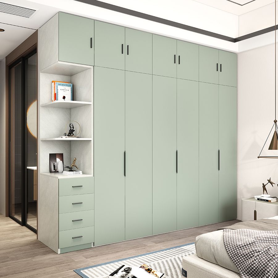 Manufactured Wooden Kids Closet Green Colour Wardrobe Closet with Drawers