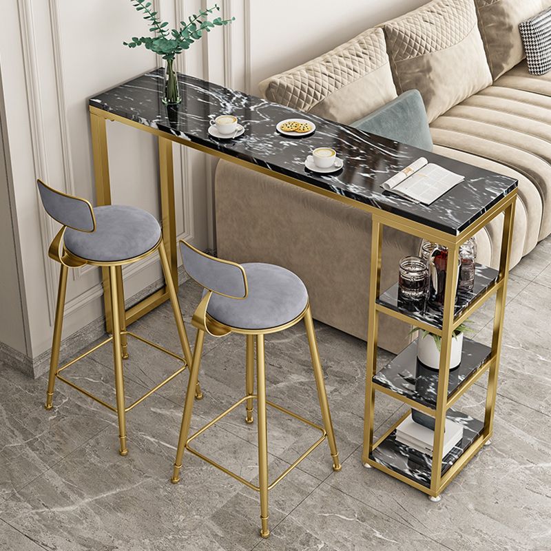 Marble Contemporary Cocktail Bar Table with Storage Rectangle Counter Table
