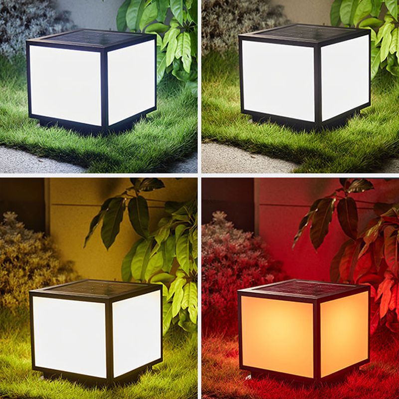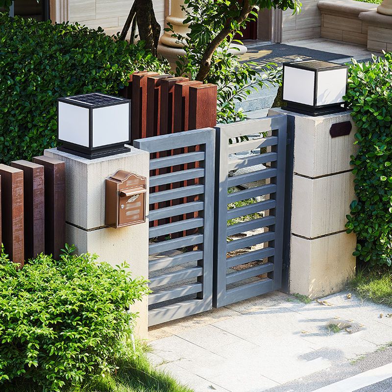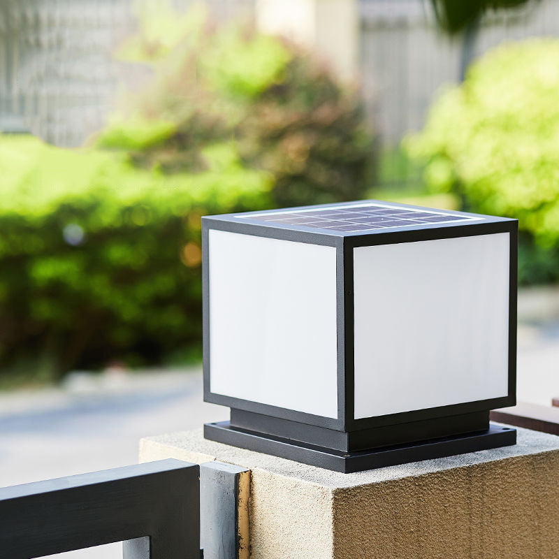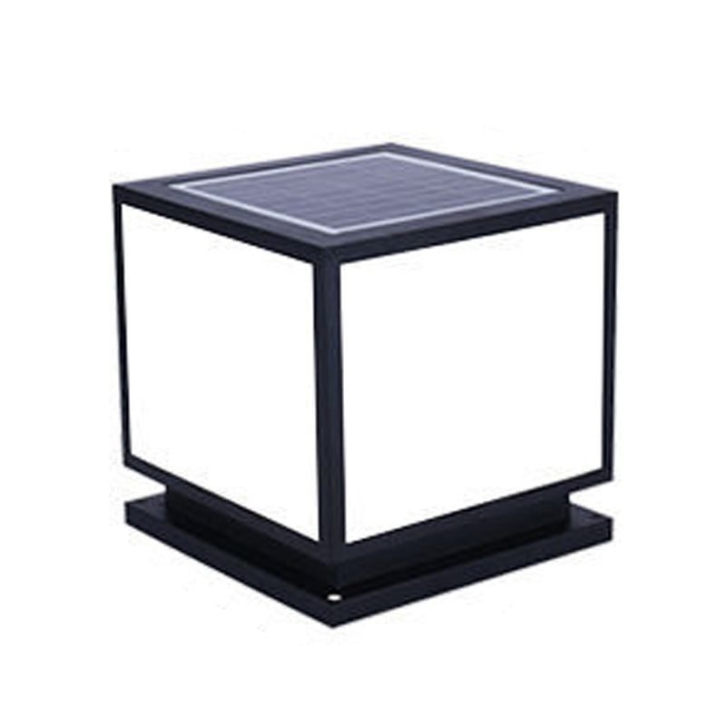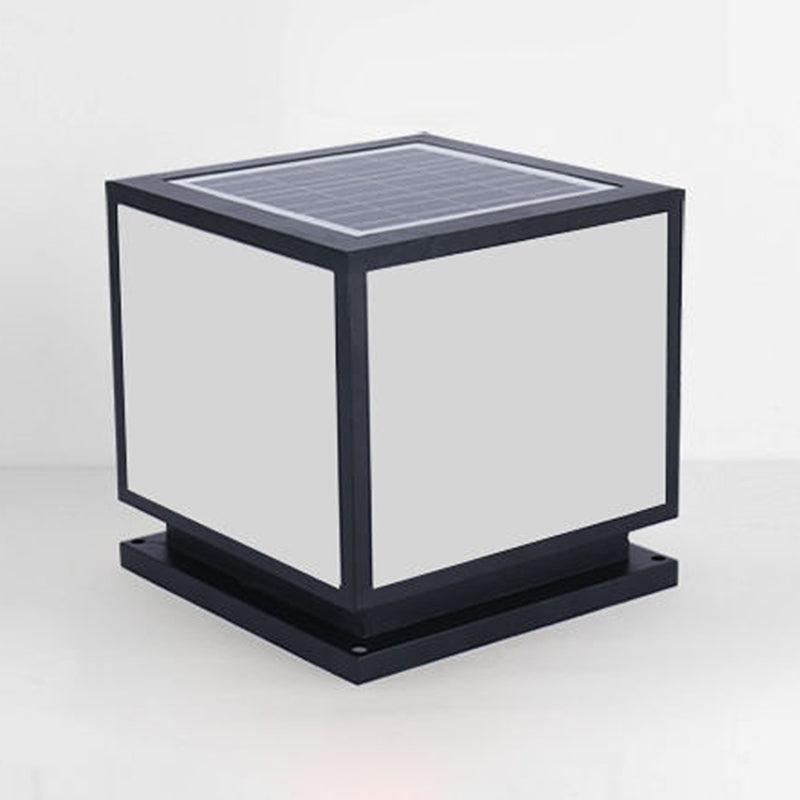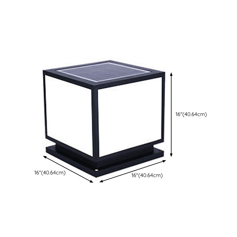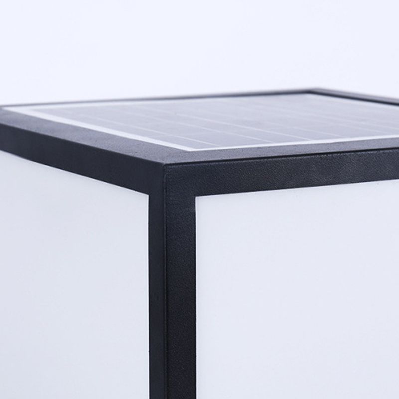 Metal Square Shape Pillar Lamp Modern Style 1 Light Solar Outdoor Light in Black