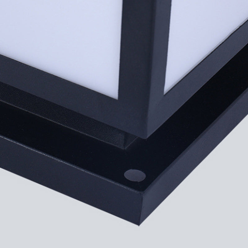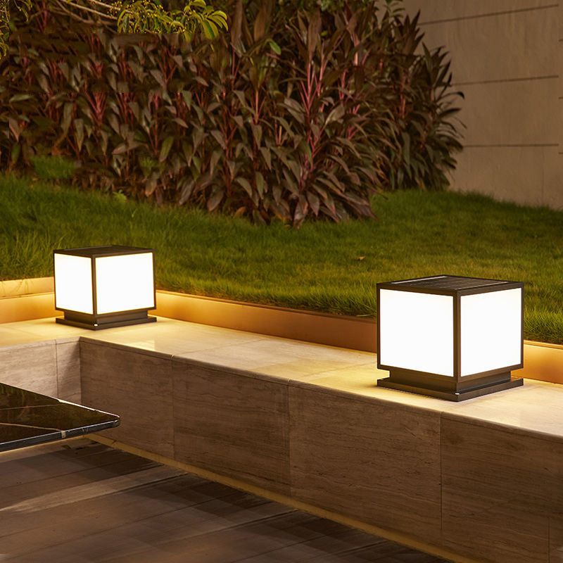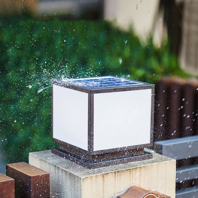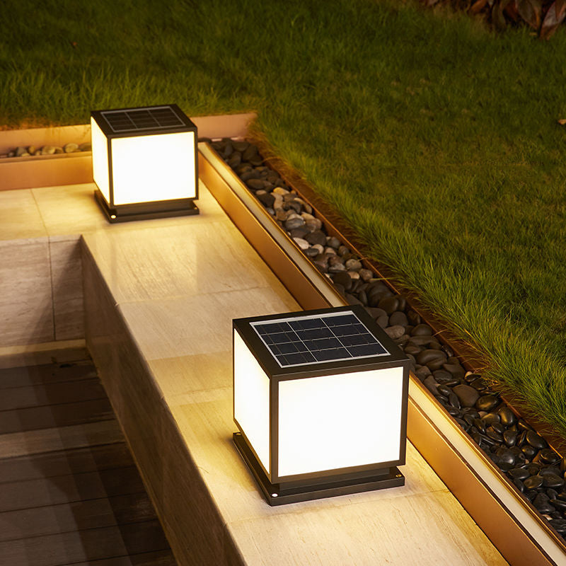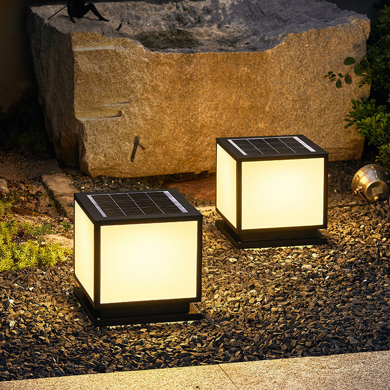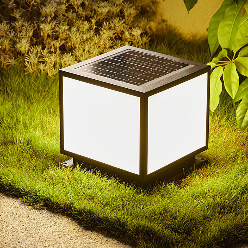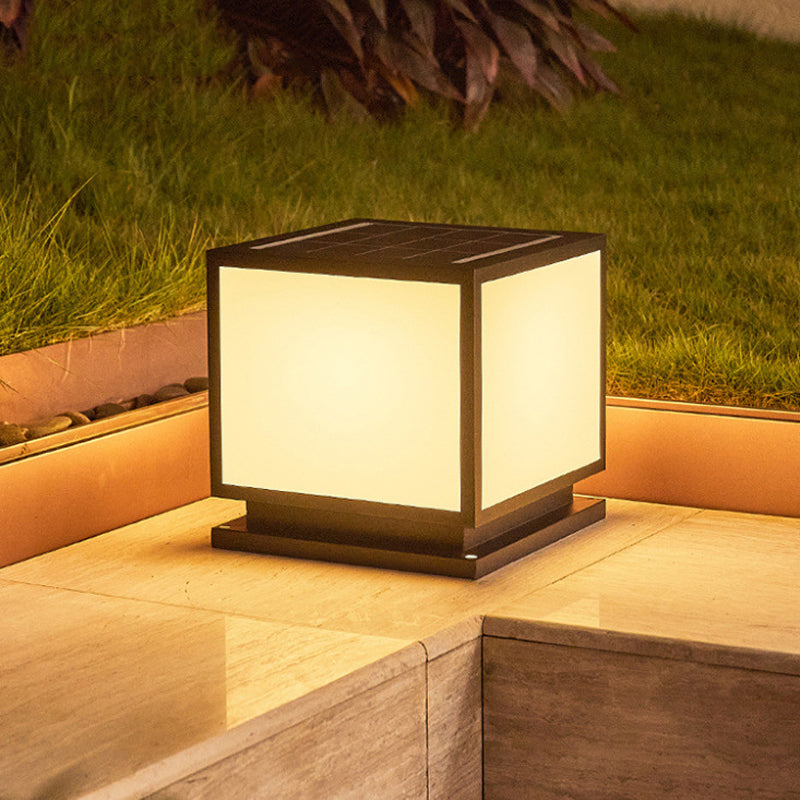 Metal Square Shape Pillar Lamp Modern Style 1 Light Solar Outdoor Light in Black