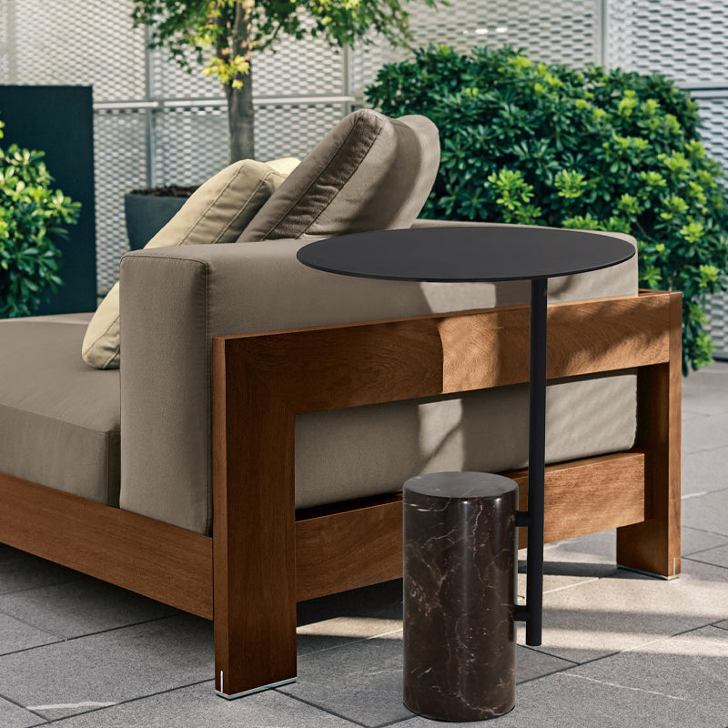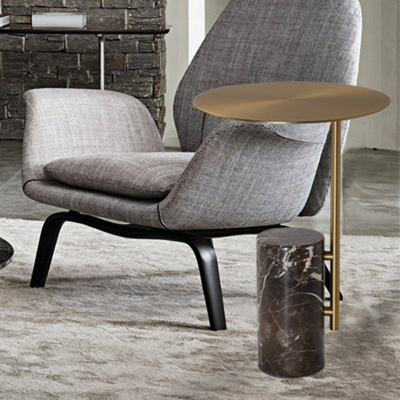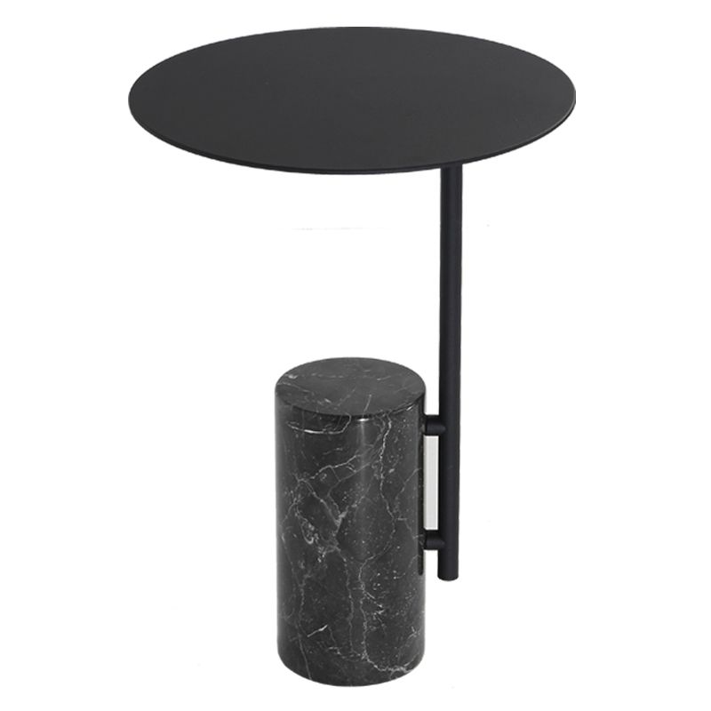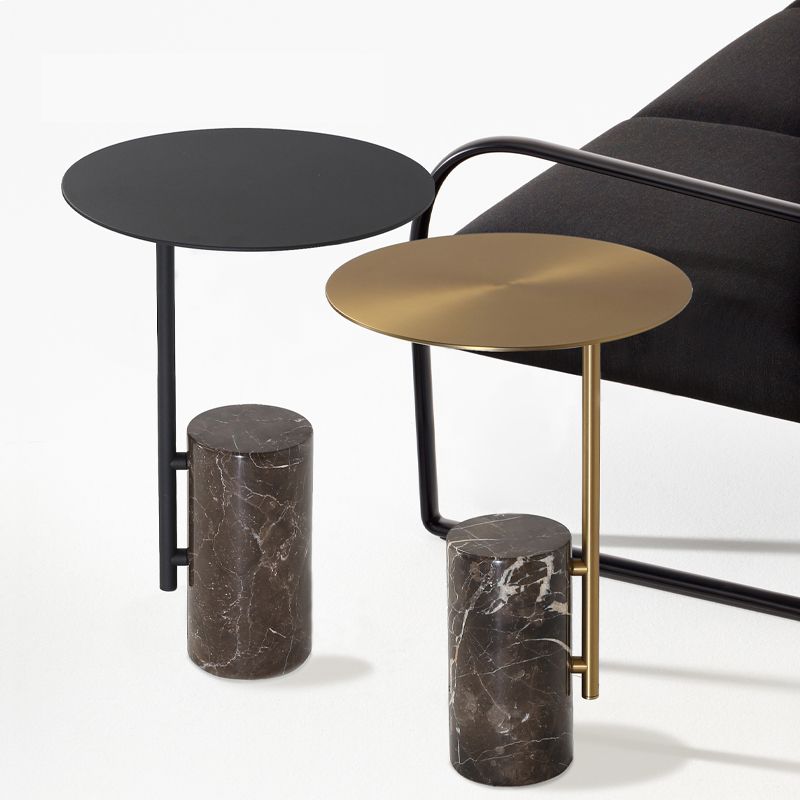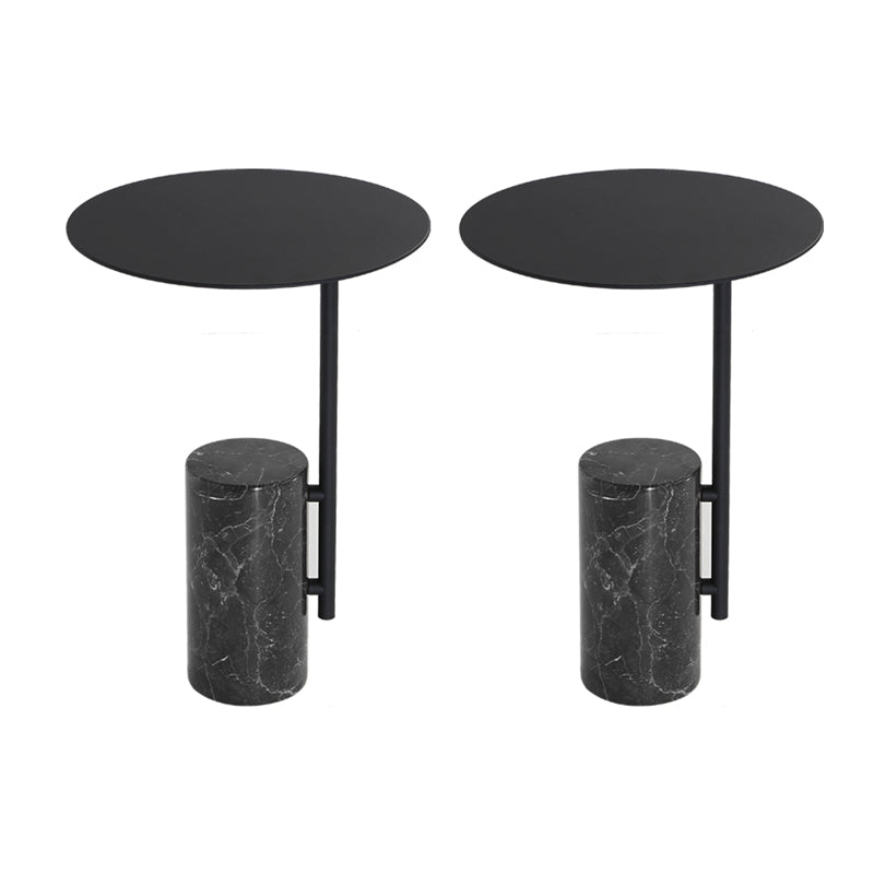 Mid-Century 17.3-inch Steel Round Top Side Table Marble Pedestal End Table