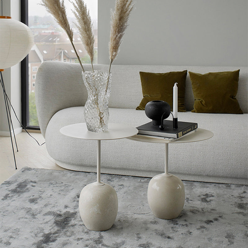 Mid-Century Metal Round Top Side Table Marble Pedestal End Table