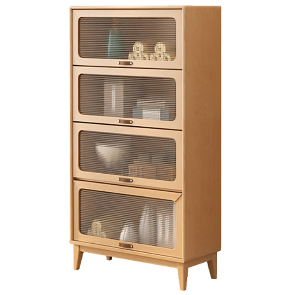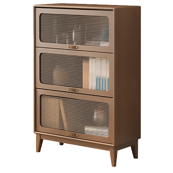 Mid-Century Modern Glass Paned Cabinet, Solid Wood Accent Cabinet