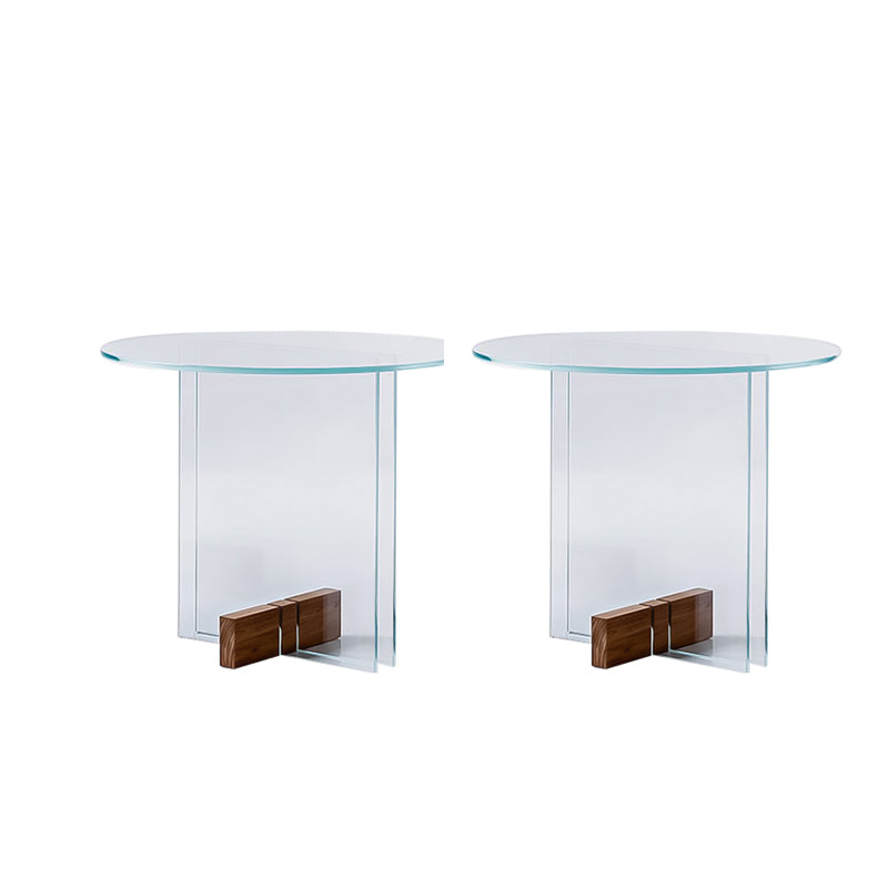 Modern 21.6-inch Round Glass Top Side Table Pedestal End Table
