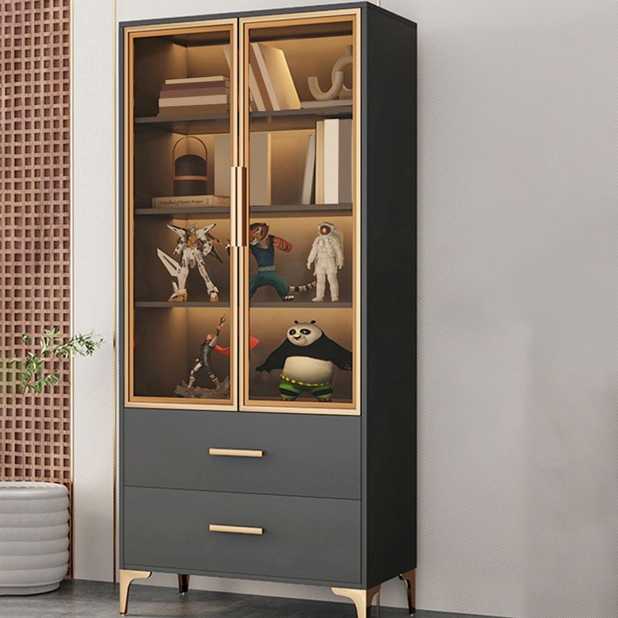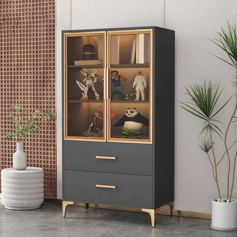 Modern Accent Cabinet Stain Resistant Metal and Wood Cabinet with Doors