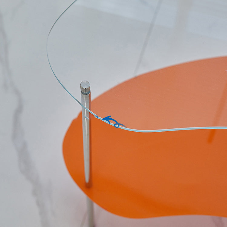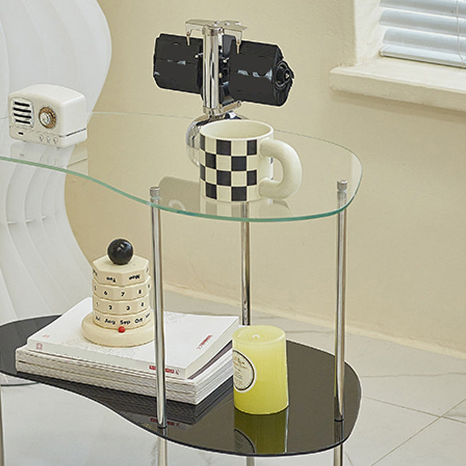 Modern Glass Top 4 Legs Double Tier Naturally Shaped Accent Side Table