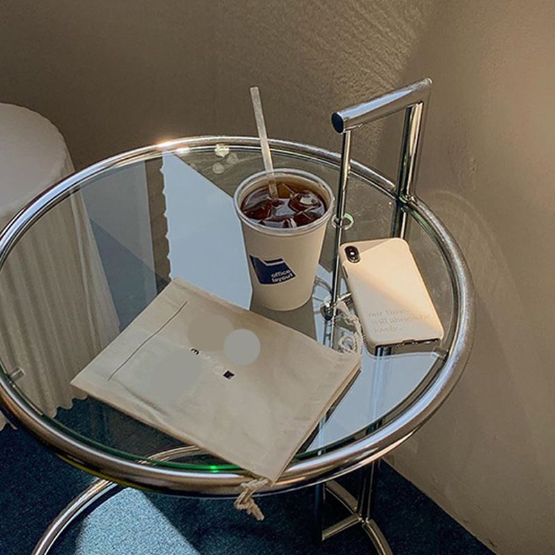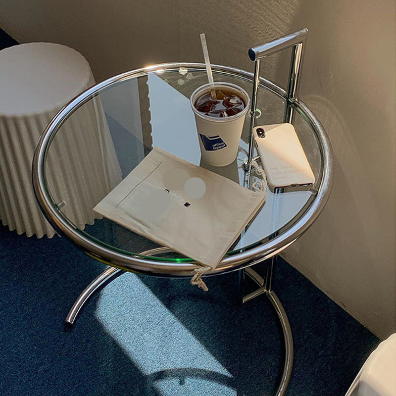 Modern Glass Top Abstract Round Living Room Accent Side Table