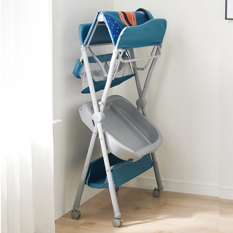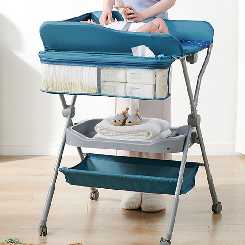 Modern Metal Baby Changing Table Flat Top Changing Table with 4 Wheels