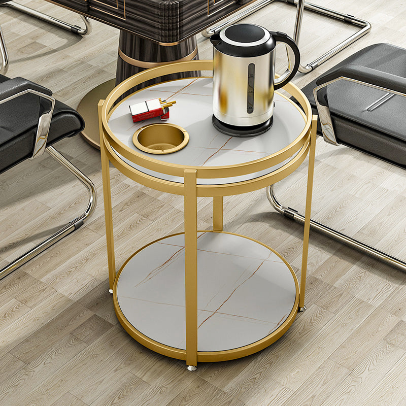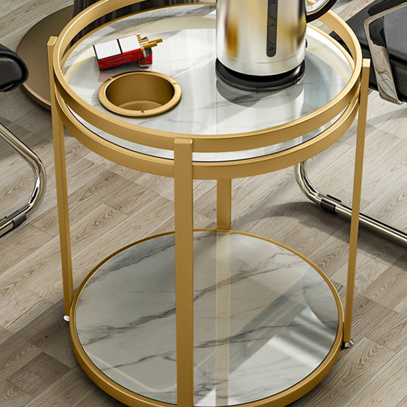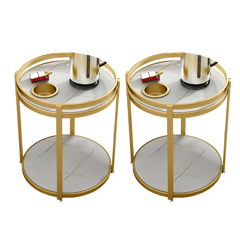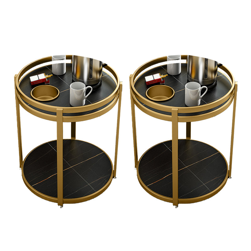 Modern Metal Frame End Table Slate Round Double Tier End Table