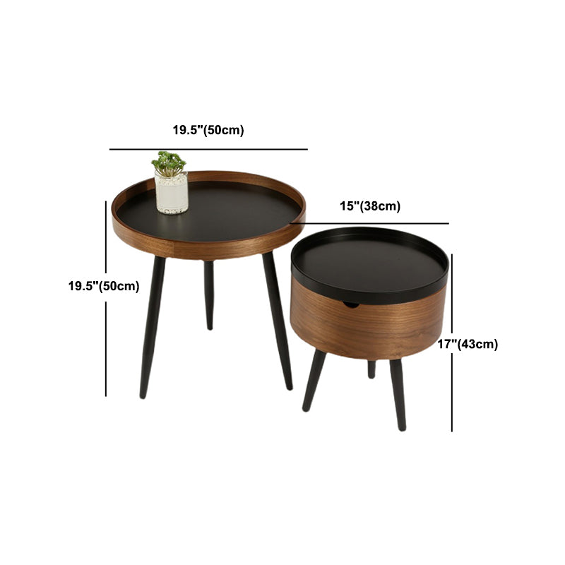Modern Style Round 3 Legs Side Table Set in Black with Storage