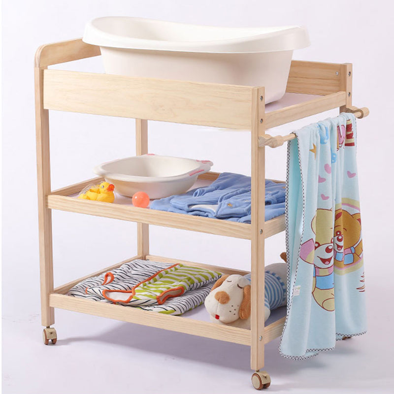 Modern Wooden Baby Changing Table Flat Top Changing Table With 4 Wheels