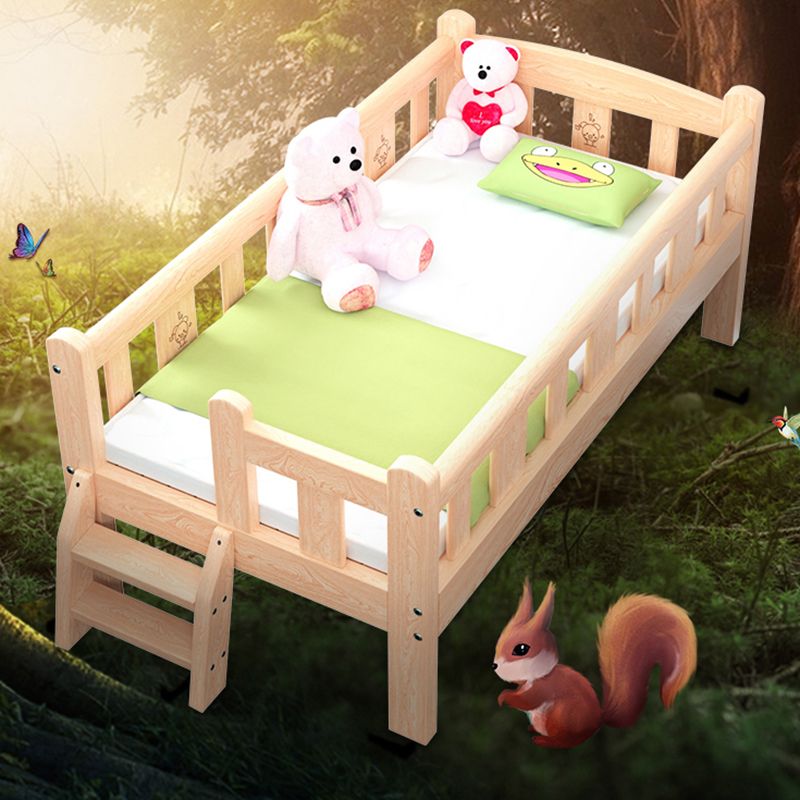Modern Wooden Nursery Bed Solid Color Rectangle Crib with Storage