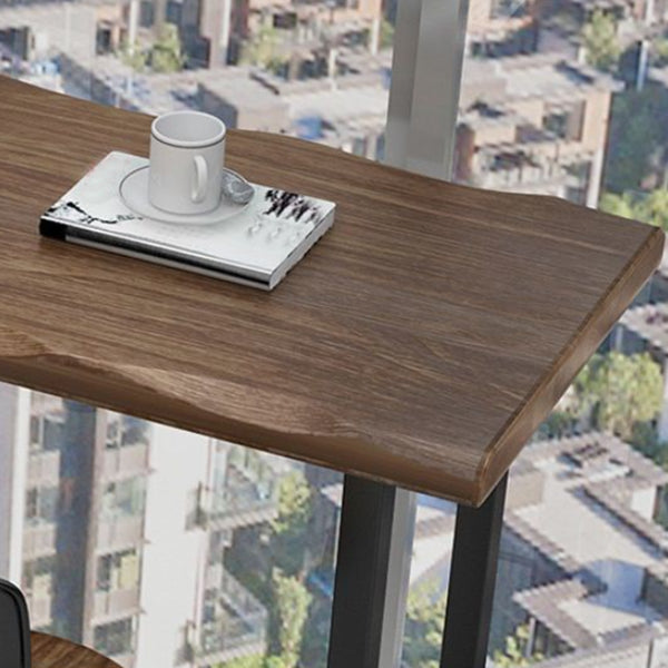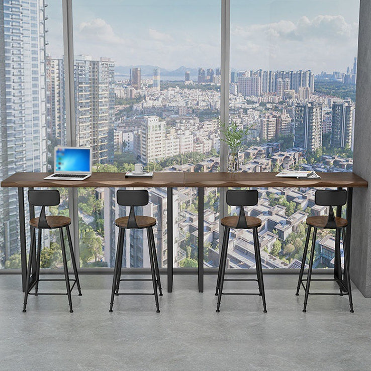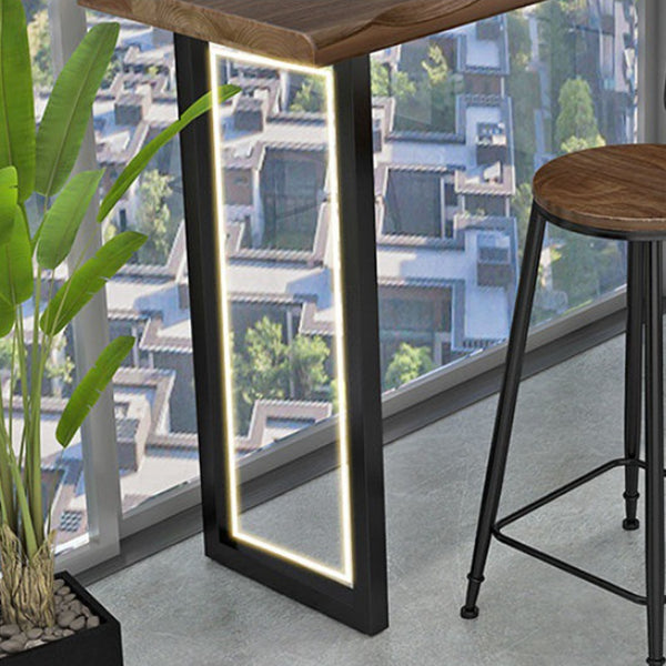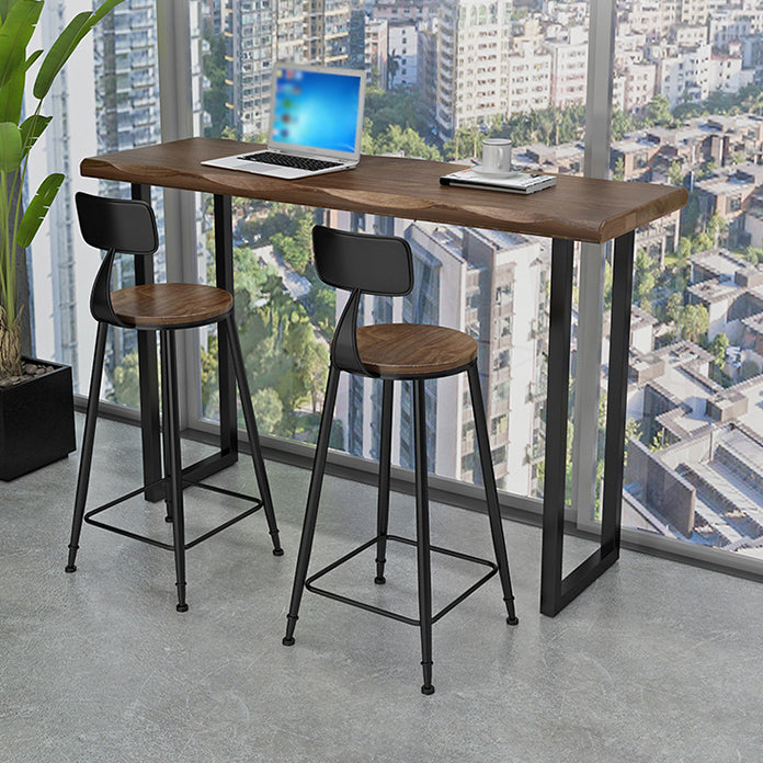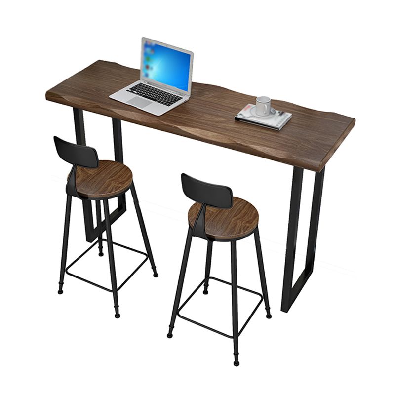 Natural and Black Bar Table Modern Sled Solid Wood Balcony Bar Dining Table