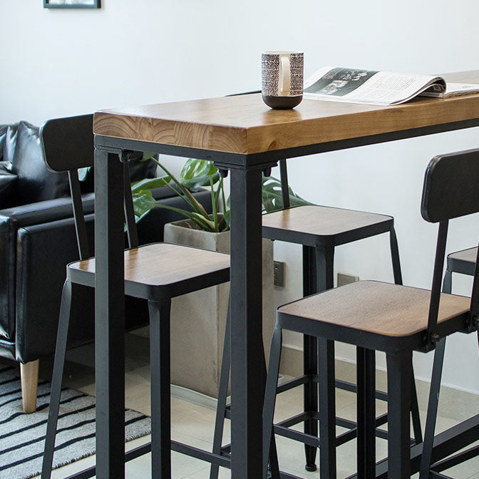 Natural Solid Wood Top Bar Table Industrial Metal Frame Pub Table
