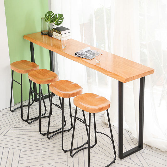 Natural Wooden Top Cocktail Bar Table Sled Modern Bistro Accent Dining Table