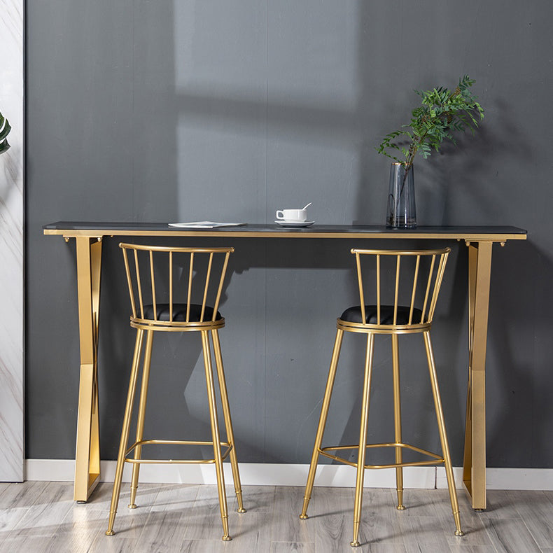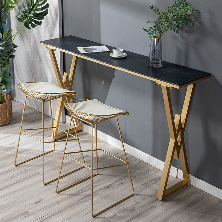 Nordic Bar Table Stone Top Bistro Table with Gold Double Pedestal