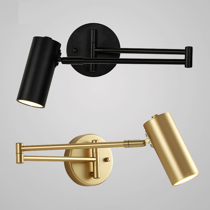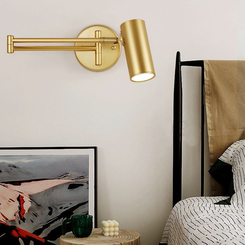 Nordic Metal Wall Light Cylinder 5.5" High Swing Arm Wall Sconce for Bedroom