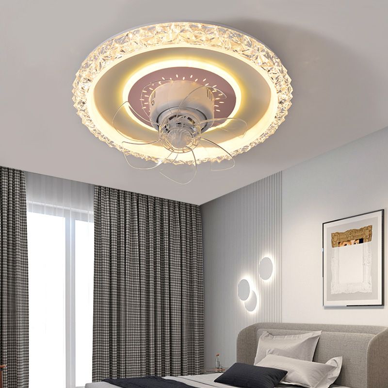 Nordic Style Round Fan Light Metal Colorful LED Flush Mount Light for Bedroom