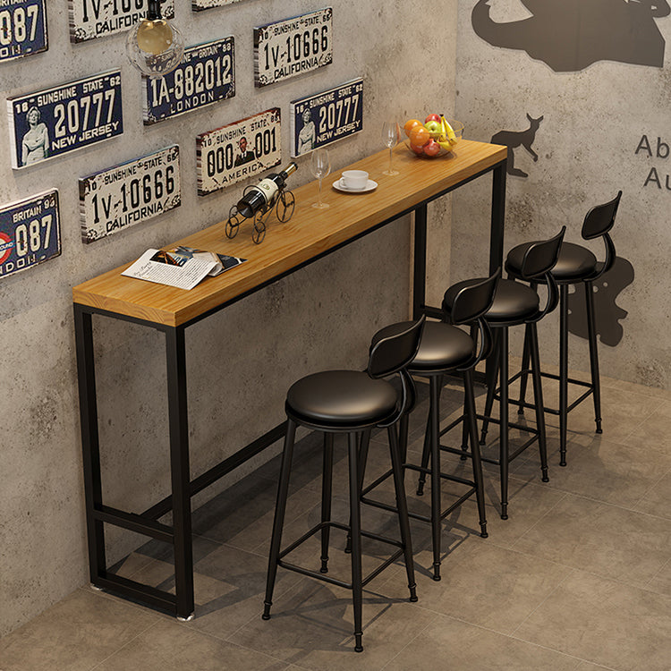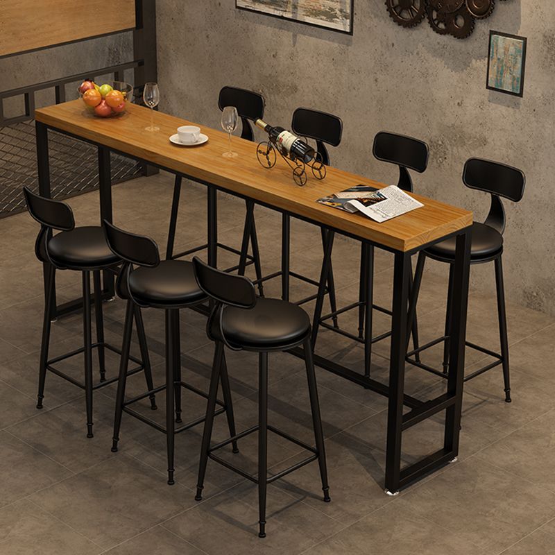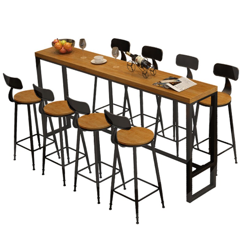 Pine Wood Bar Dining Table Industrial Rectangle Bar Table with Trestle Base for Balcony