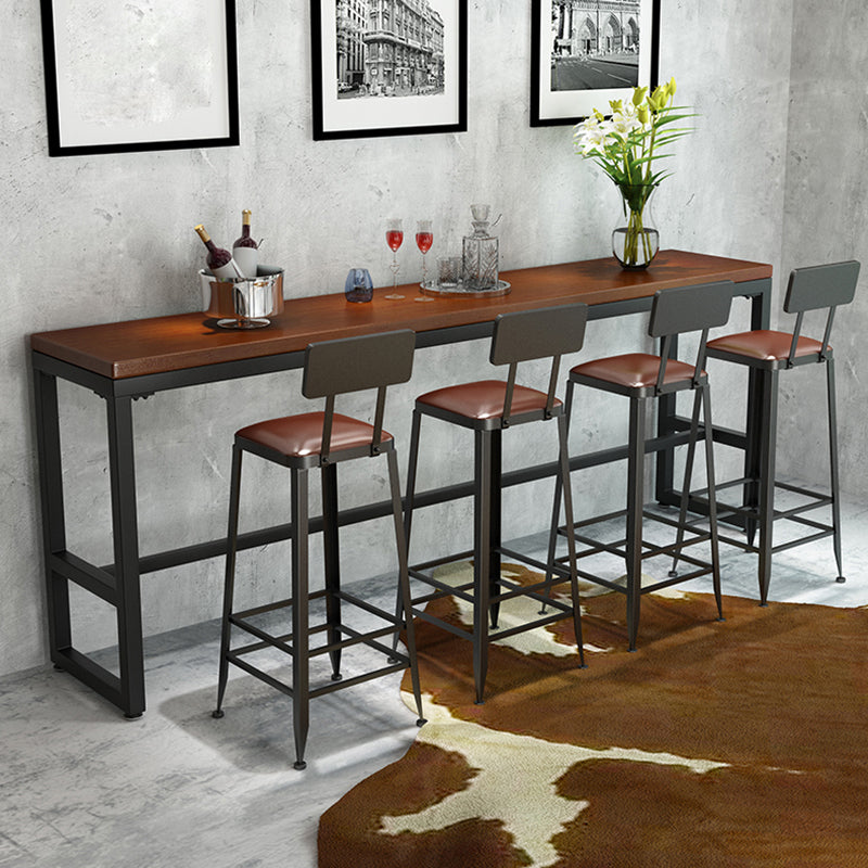 Pine Wood Bar Dining Table Industrial Rectangle Bar Table with Trestle for Living Room