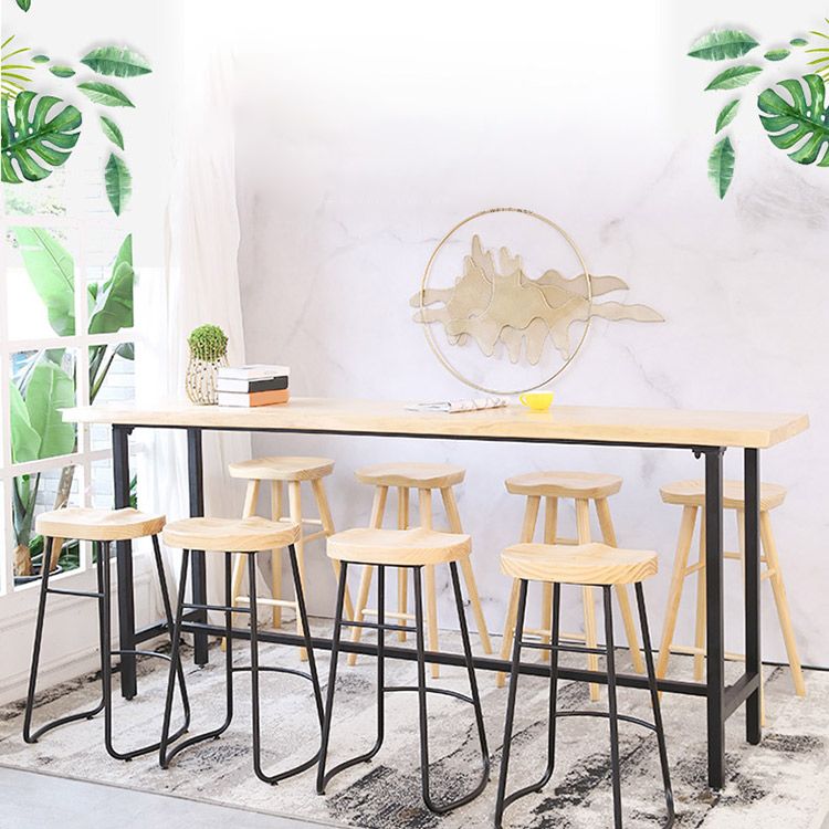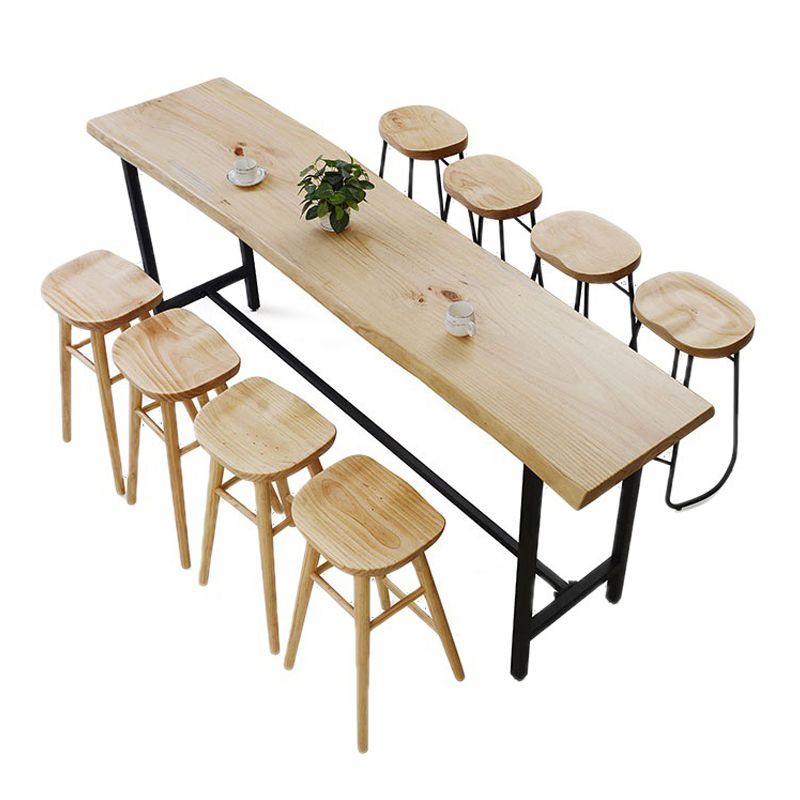 Pine Wood Bar Dining Table Modern Rectangle Bar Table with Trestle for Cafe