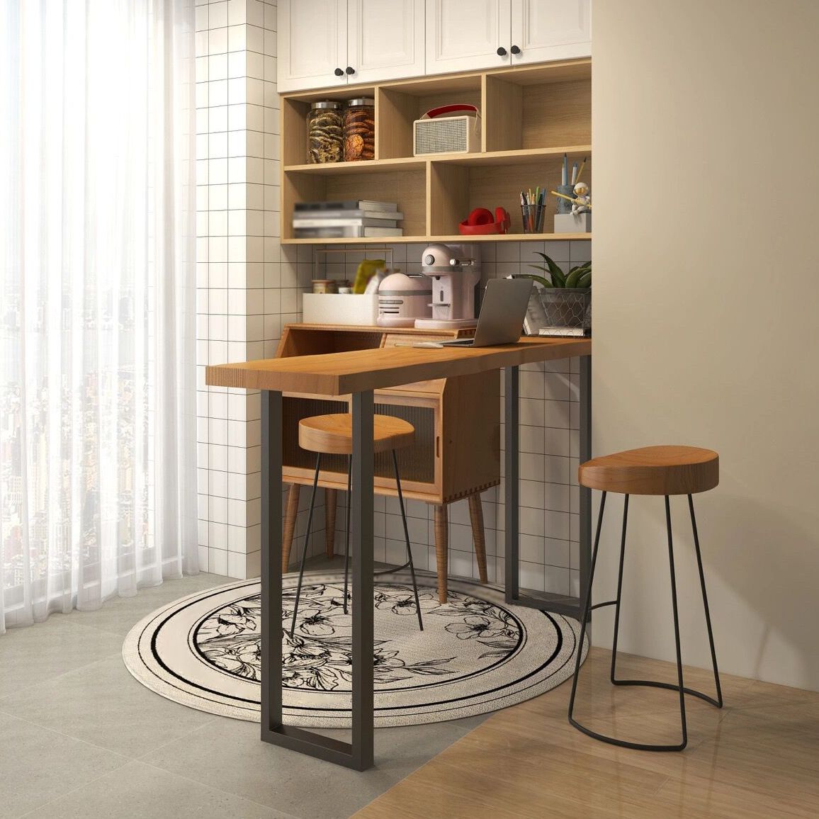 Pine Wood Top Rectangle Pub Table Industrial Bar Table with Double Pedestal in Black