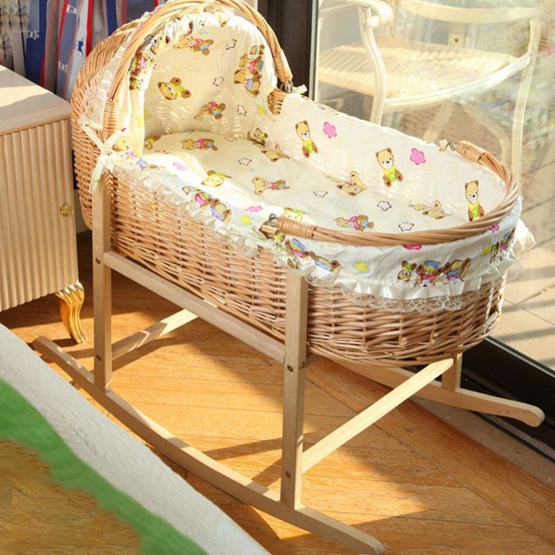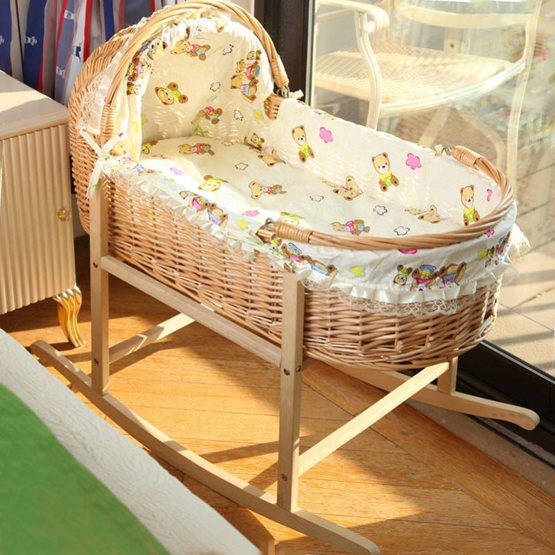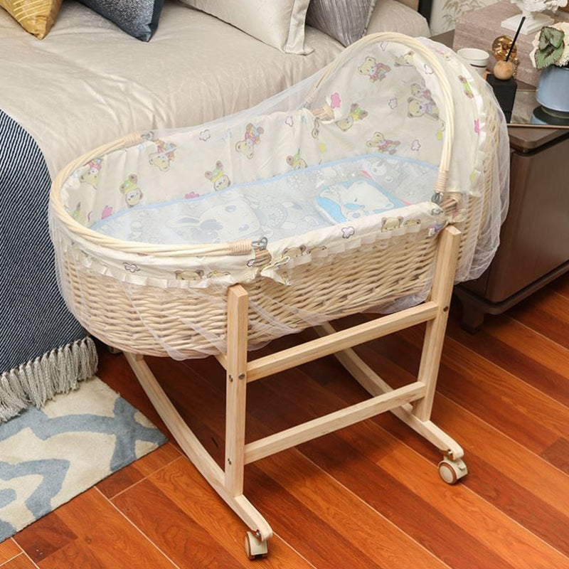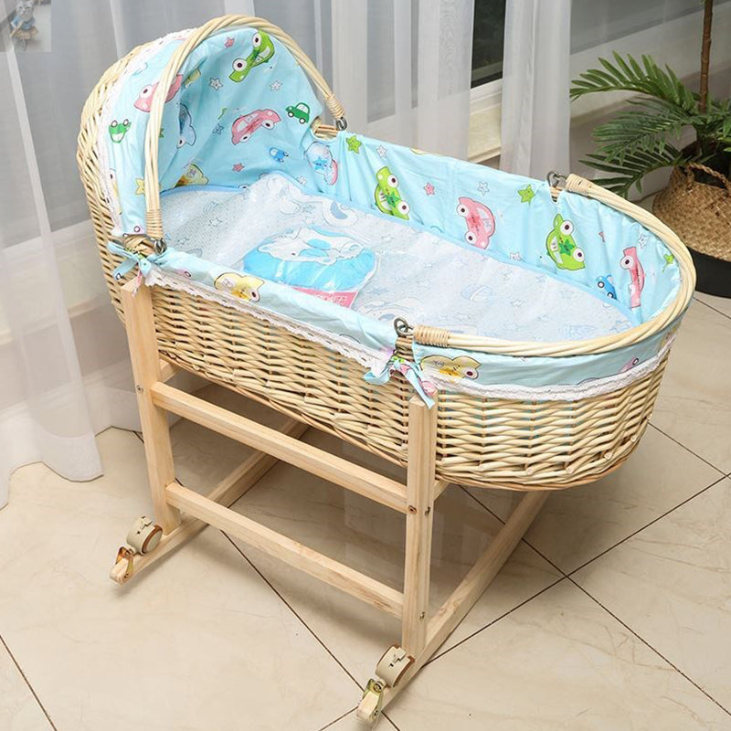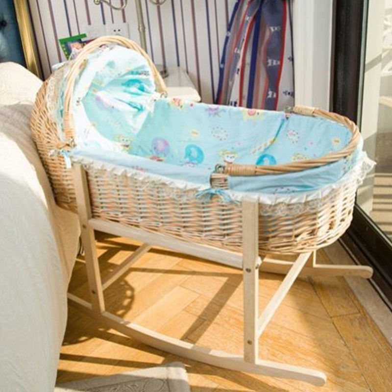 Rattan Oval Bassinet Rocking and Gliding Crib Cradle for Baby