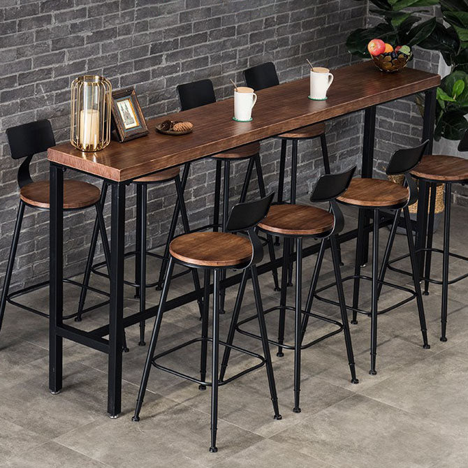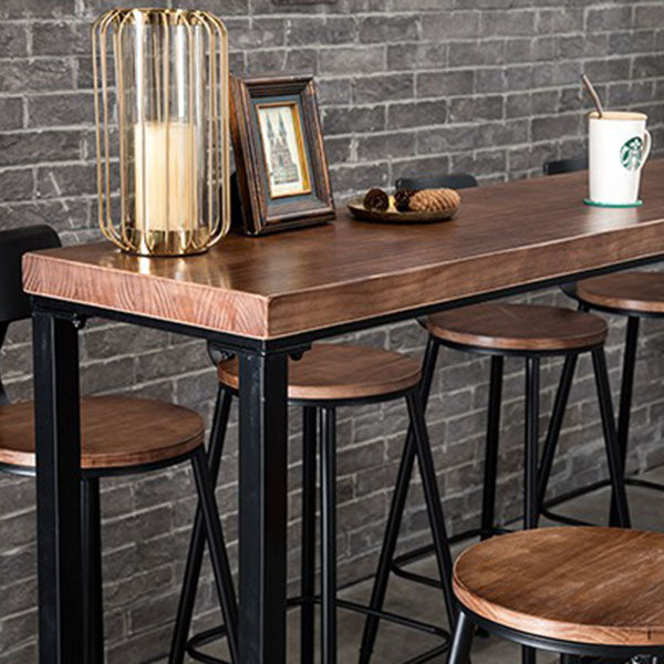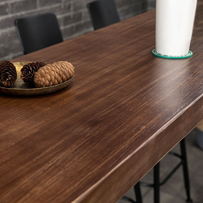 Rectangle Pine Wood Top Bar Table in Brown Modern Bistro Table with Black Trestle Base