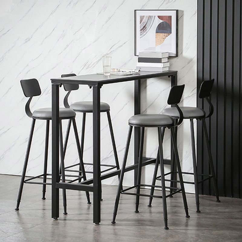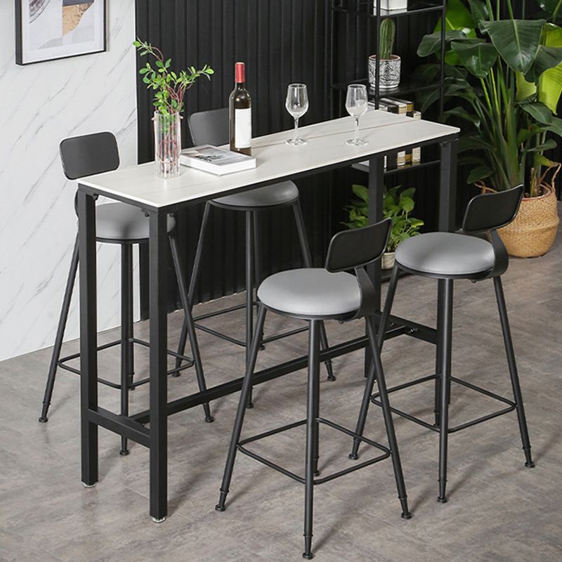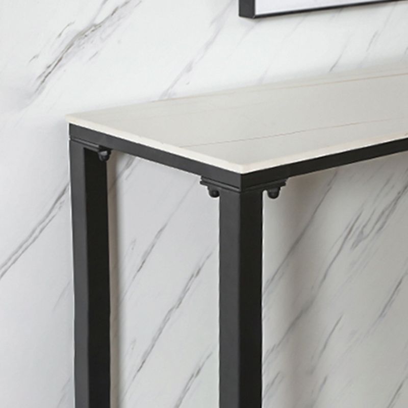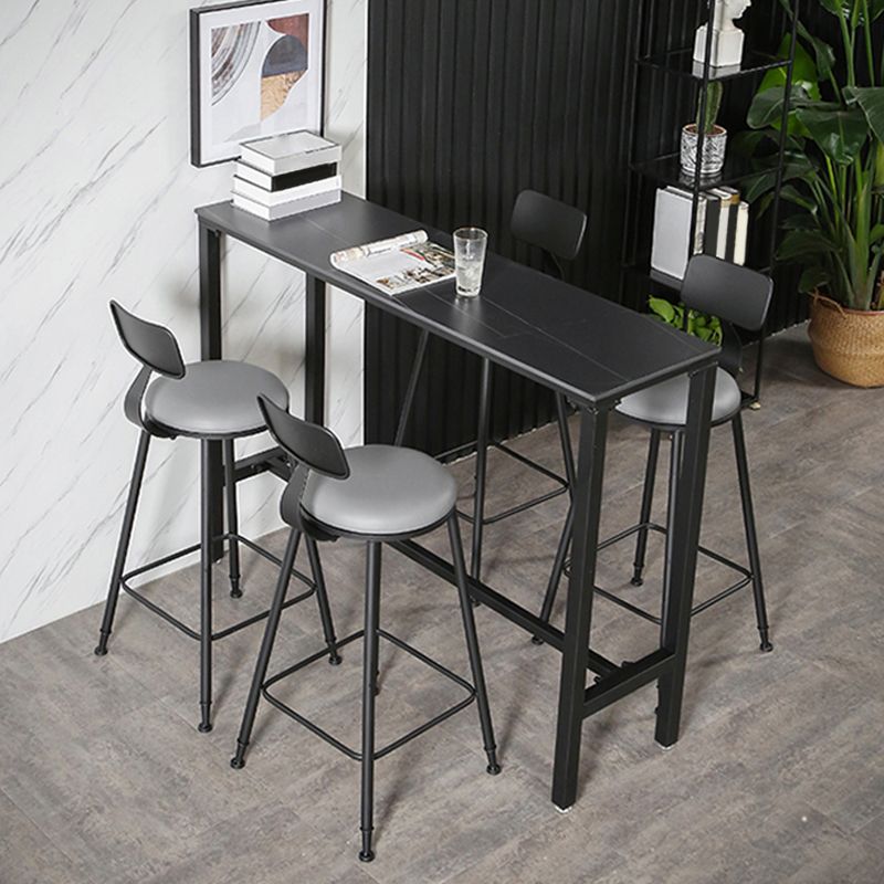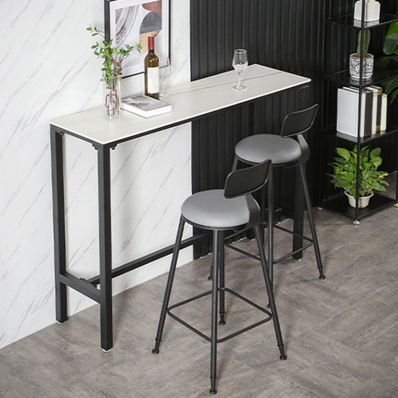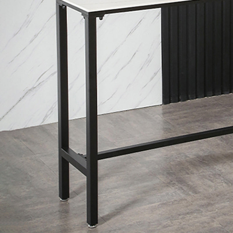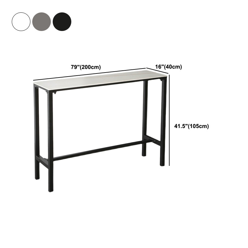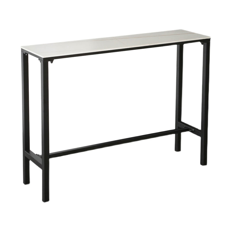 Rectangle Stone Top Bistro Bar Desk with Trestle Industrial Metal Frame Bar Table