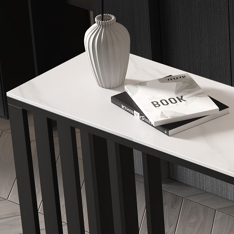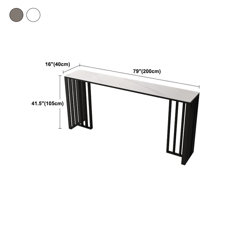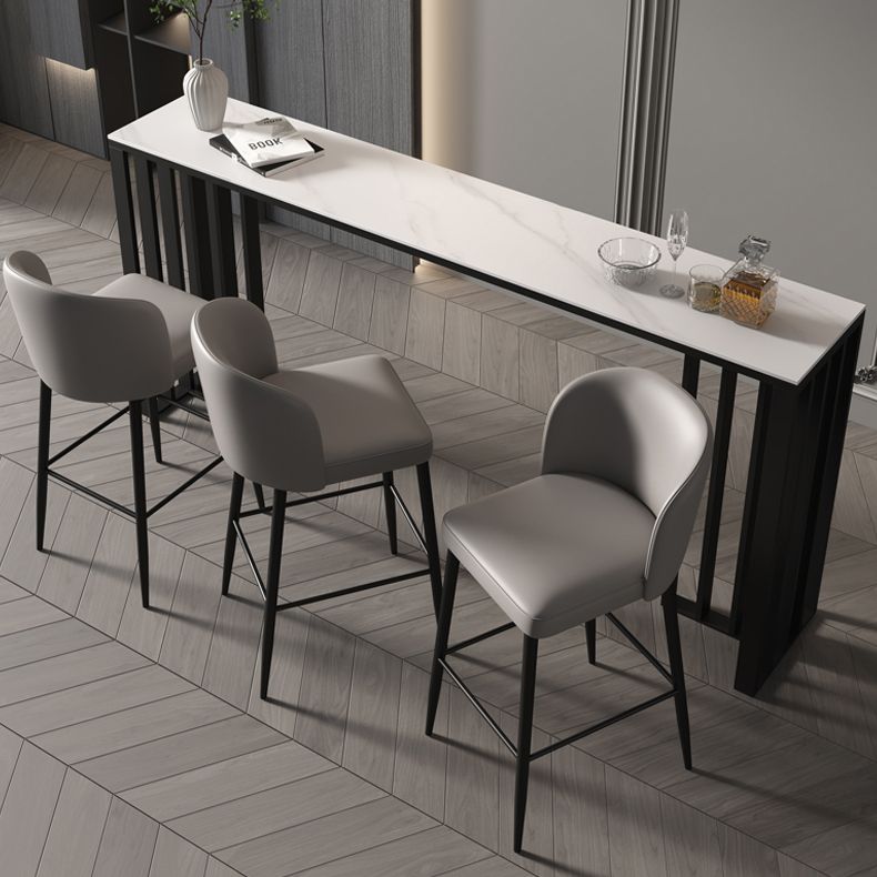 Rectangle Stone Top Bistro Table Modern Pub Table with Metal Base