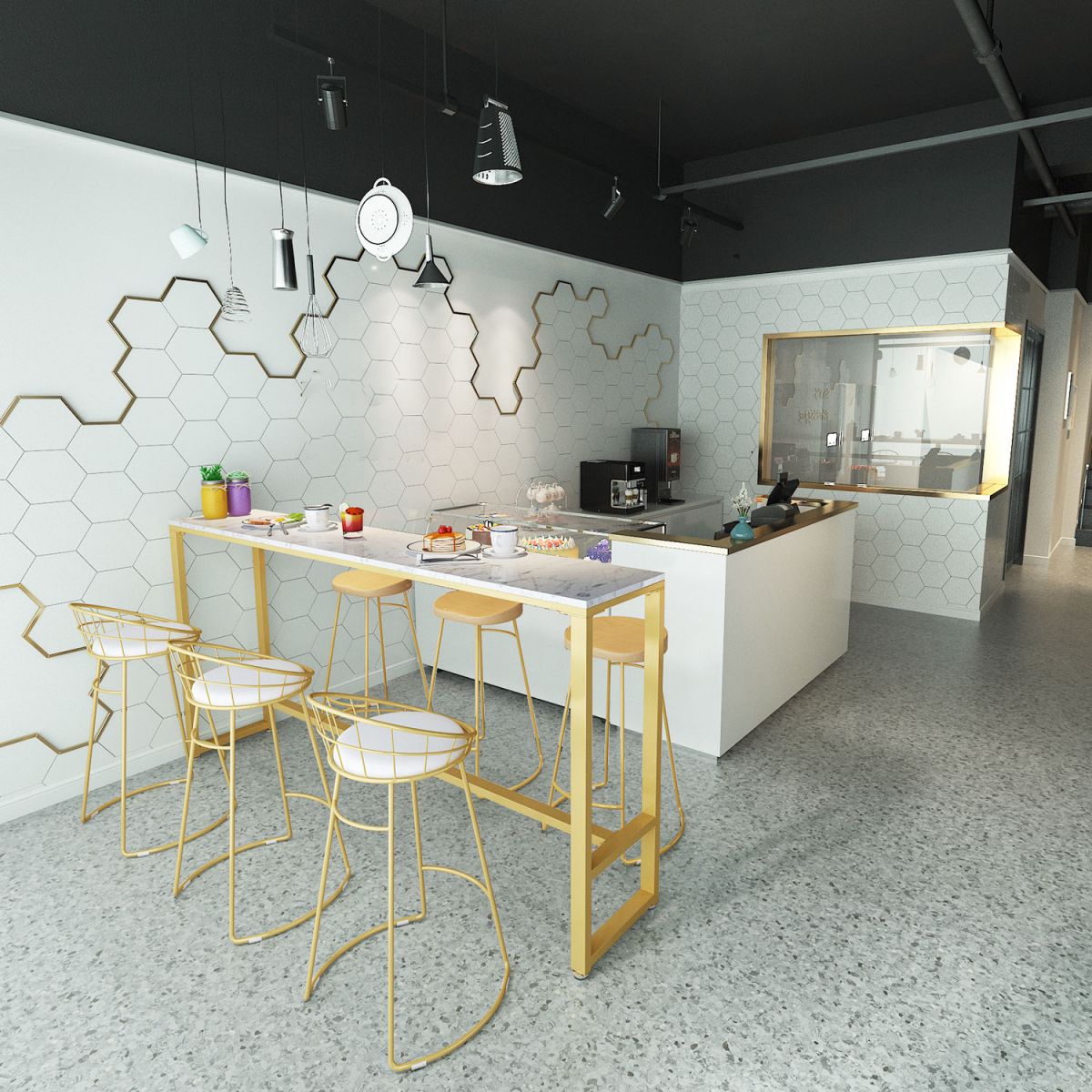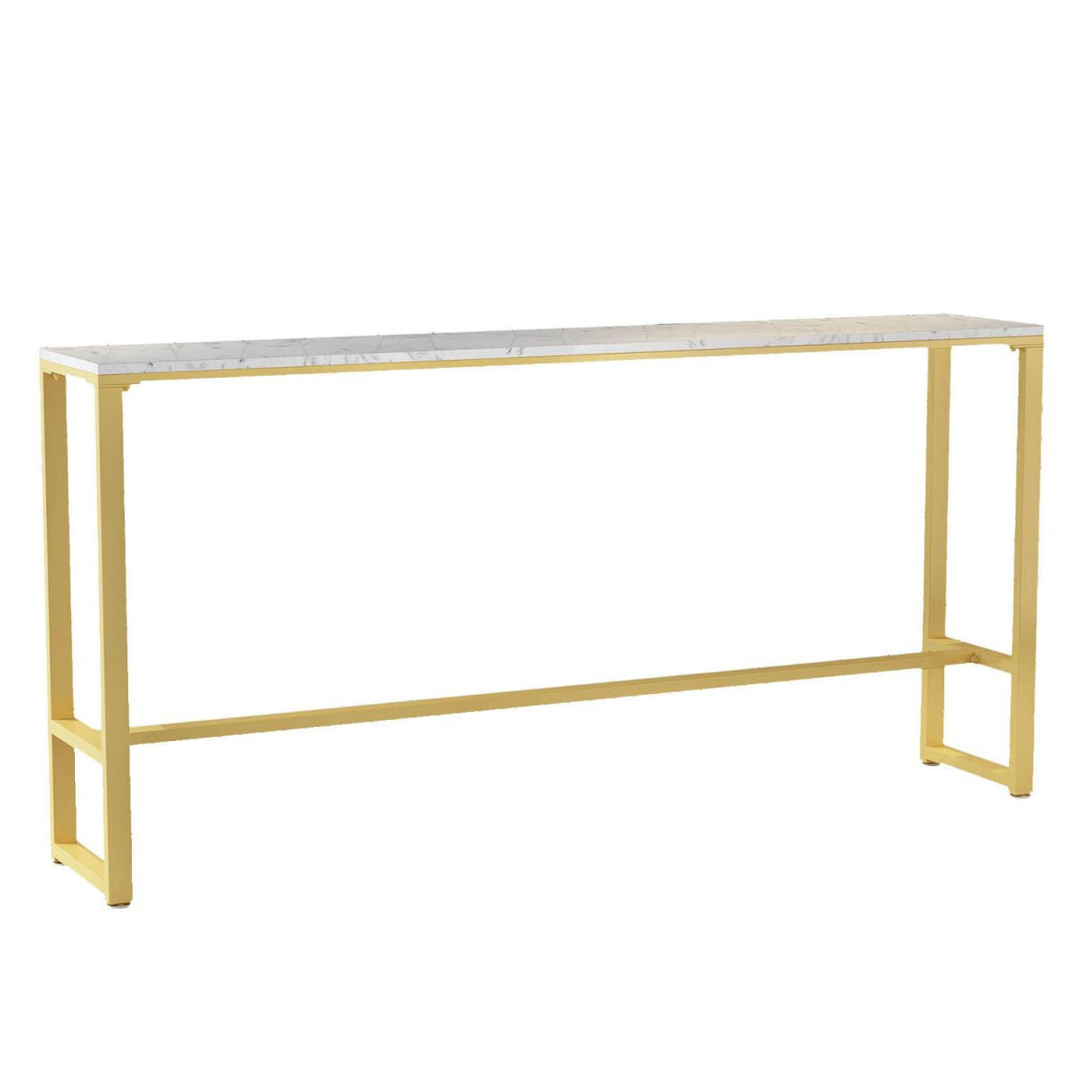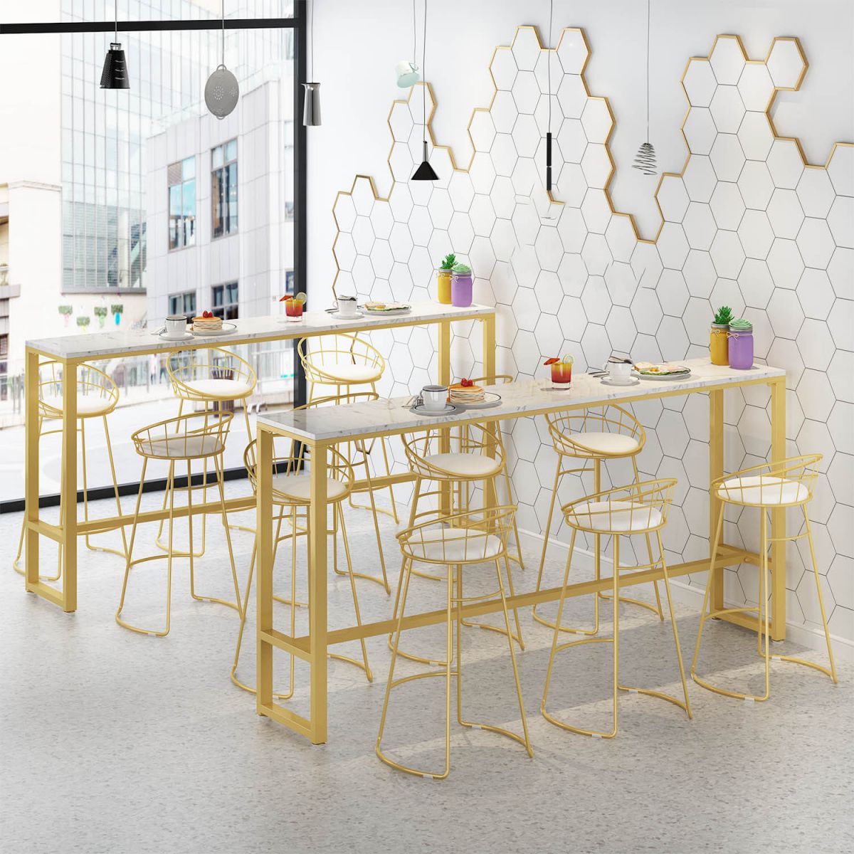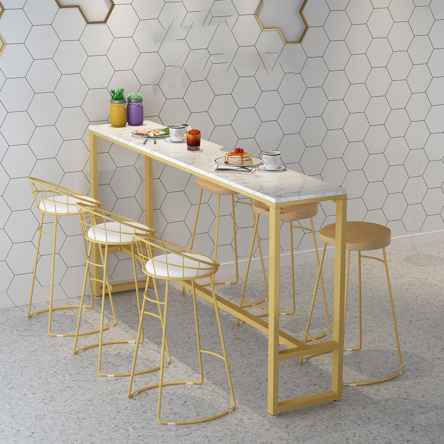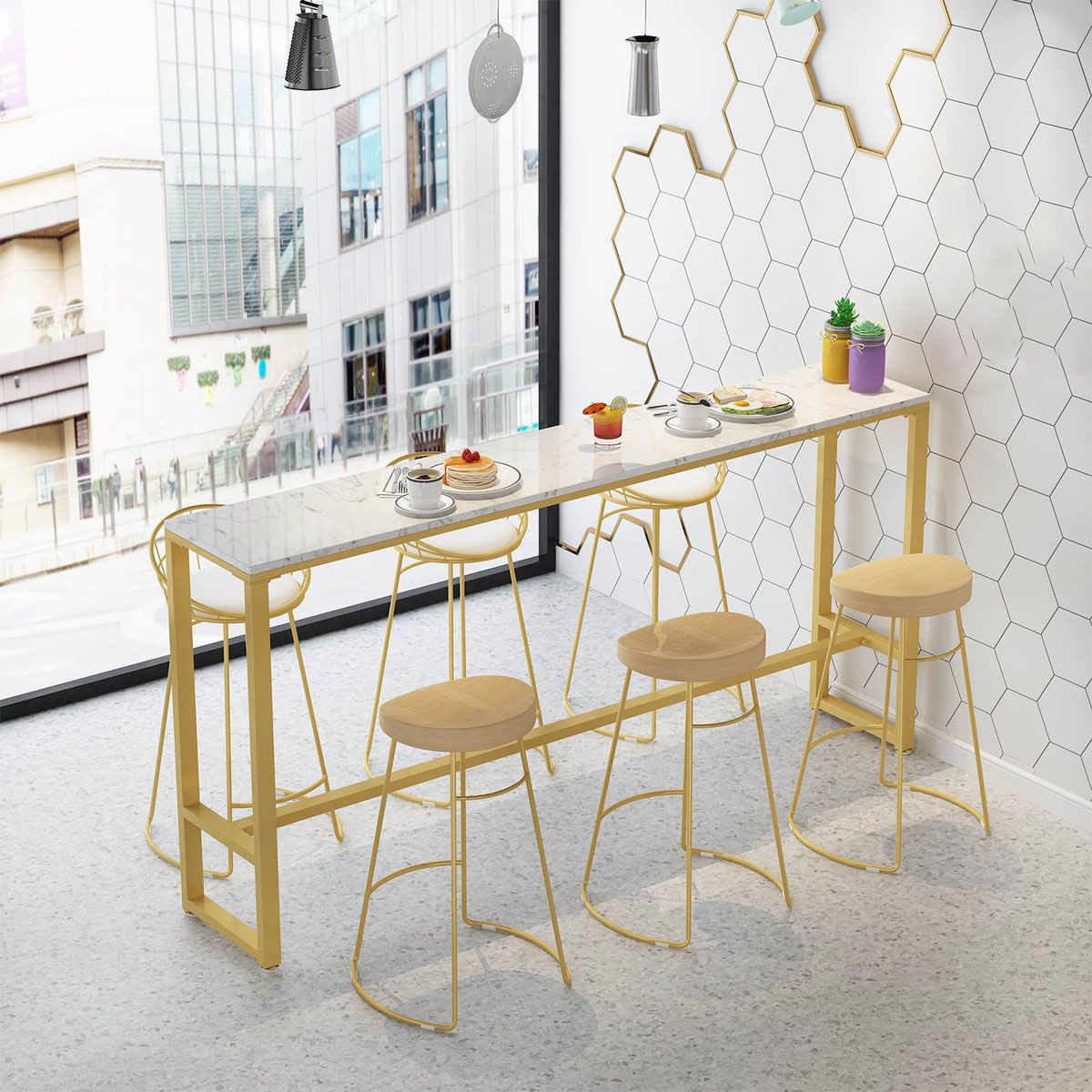 Rectangular Artificial Marble Bar Table Luxurious Bistro Table with Double Pedestal