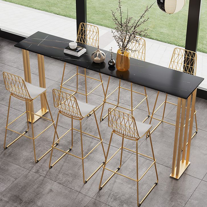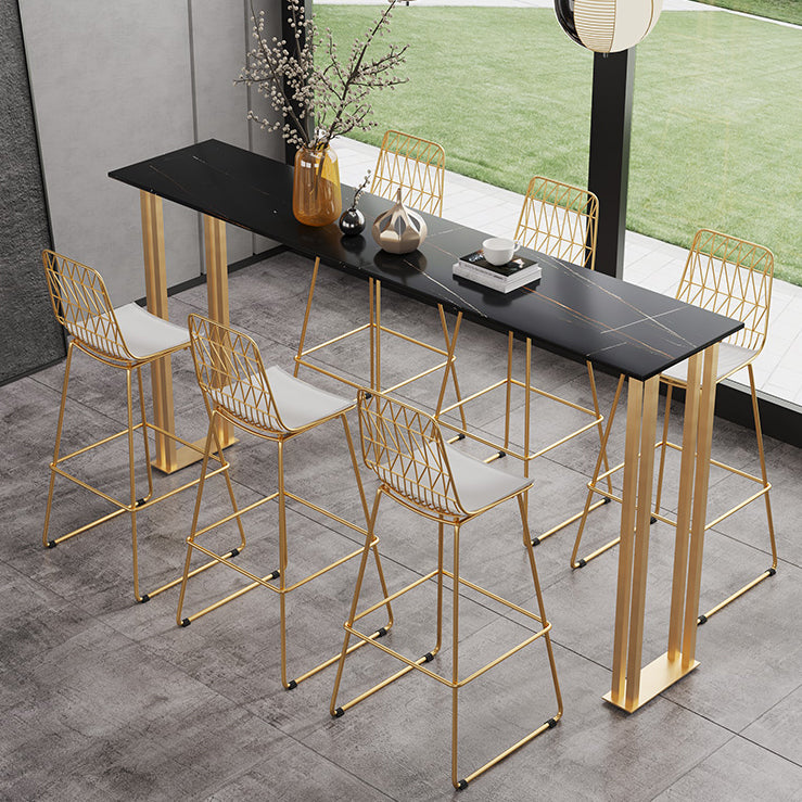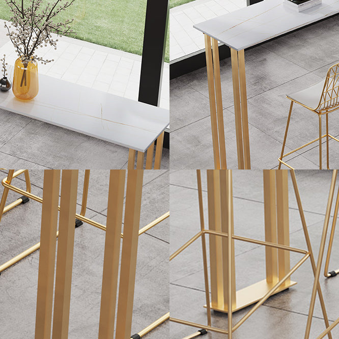 Sintered Stone Top Rectangular Bar Table Luxurious Pub Table with Double Pedestal