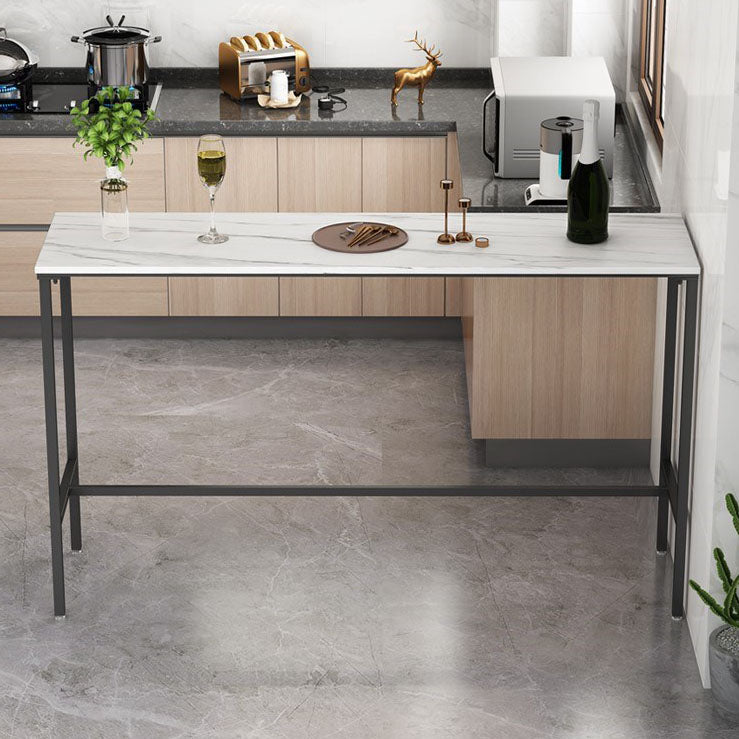 Sintered Stone Top Rectangular Bar Table Modern Bistro Table with Trestle Base
