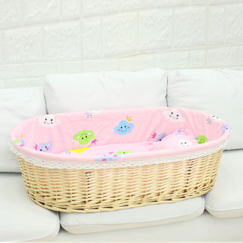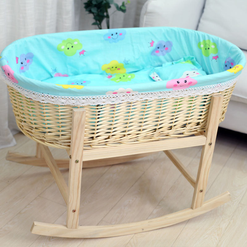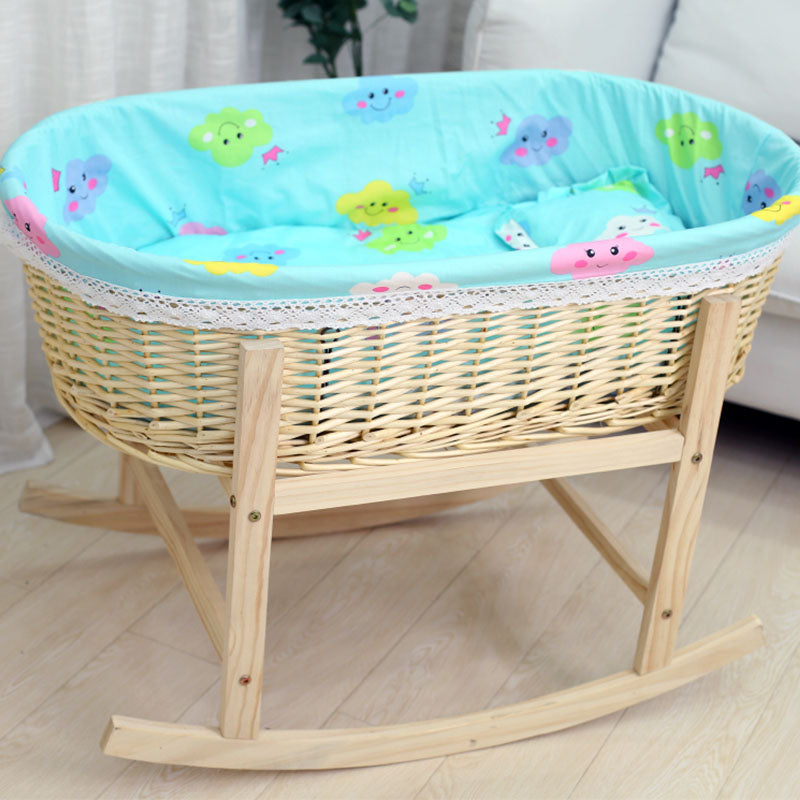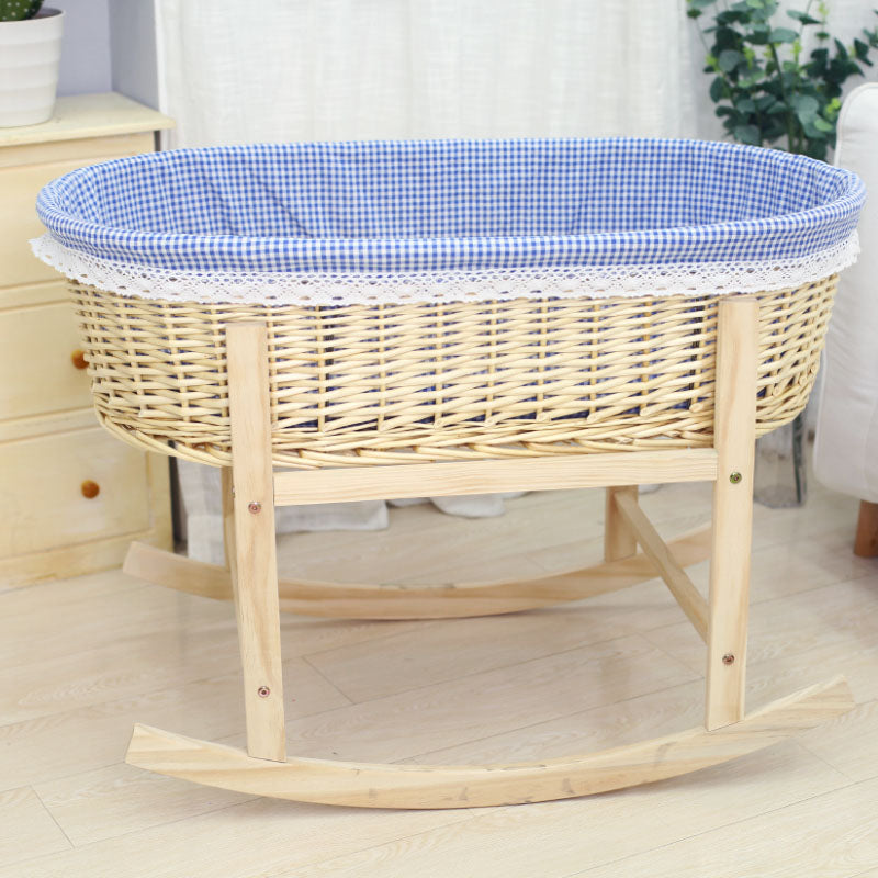 Solid Wood and Wicker Crib Cradle Gliding Or Rocking Oval Crib Cradle for Baby