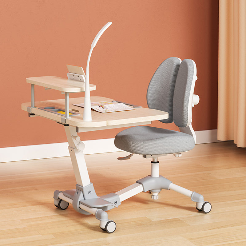Solid Wood Study Desk Ergonomic Home Desk with Chair with Casters
