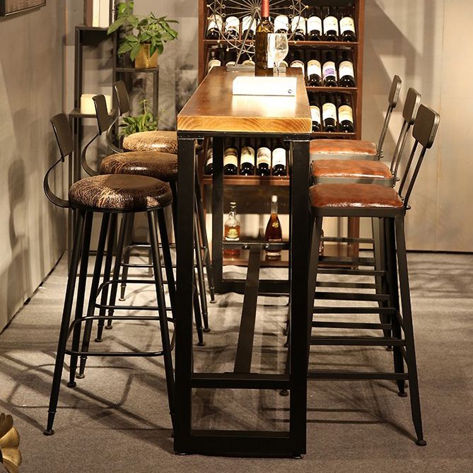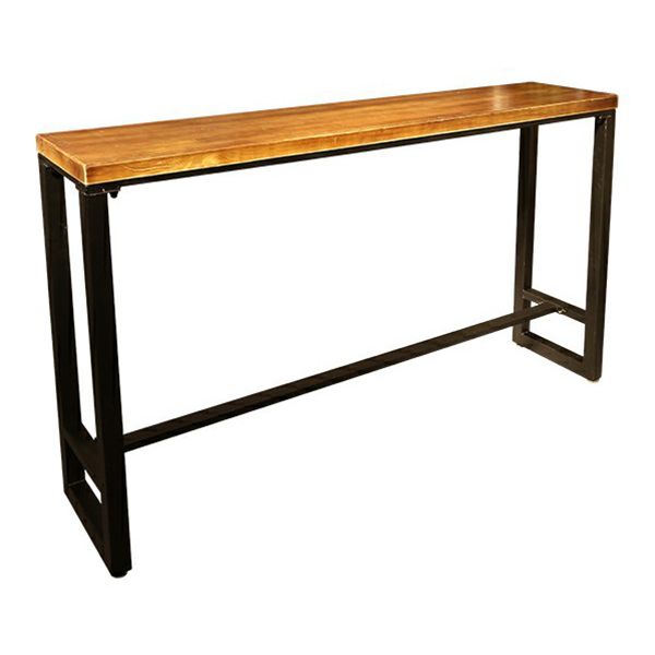 Solid Wood Top Bar Dining Table Modern Bar Table with Trestle Base in Black