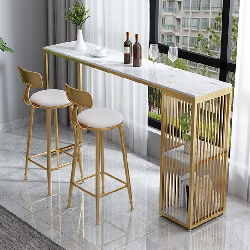 Stone Bar Dining Table Glam Rectangle Bar Table with Double Pedestal for Kitchen Porch